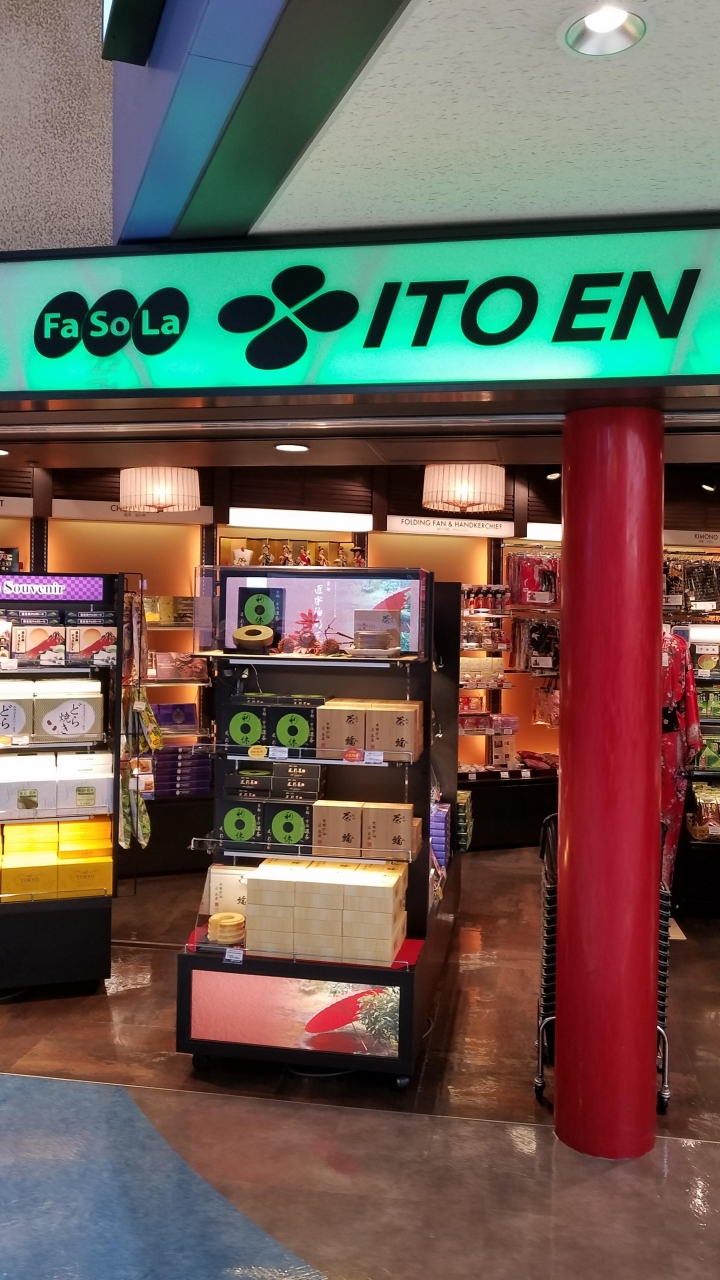 FaSoLaは、成田空港内の各ターミナルに複数あるお土産店です。第1ターミナルの店舗は、お茶の伊藤園がメインで緑と赤の色で和の雰囲気いっぱいの落ち着いたお店です。お茶はもちろん、日本各地の銘品、お菓子が充実、外国人に人気の抹茶味のチョコもあり、現地土産用に購入し重宝しました。