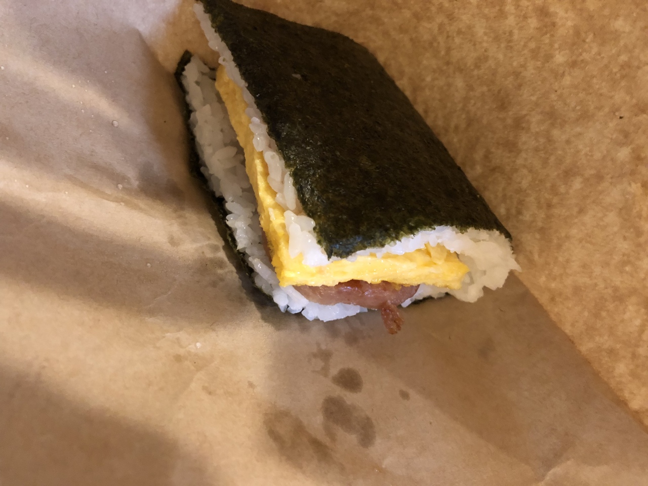 アメリカンヴィレッジのお店で朝早くから開いているお店は、ほとんどないですがこちらは早くから開店しています。但し朝はメニューも限られていてスープ系は味噌汁系はなくもずくスープのみでした。スパムおにぎりはボリュームがあり美味しかったです。
