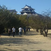松山城は大街道電停から徒歩5分程の所にあります。山の上に位置しているため、リフトかロープウェイか何れかを使って、登ります。日本三大平山城と言われています。