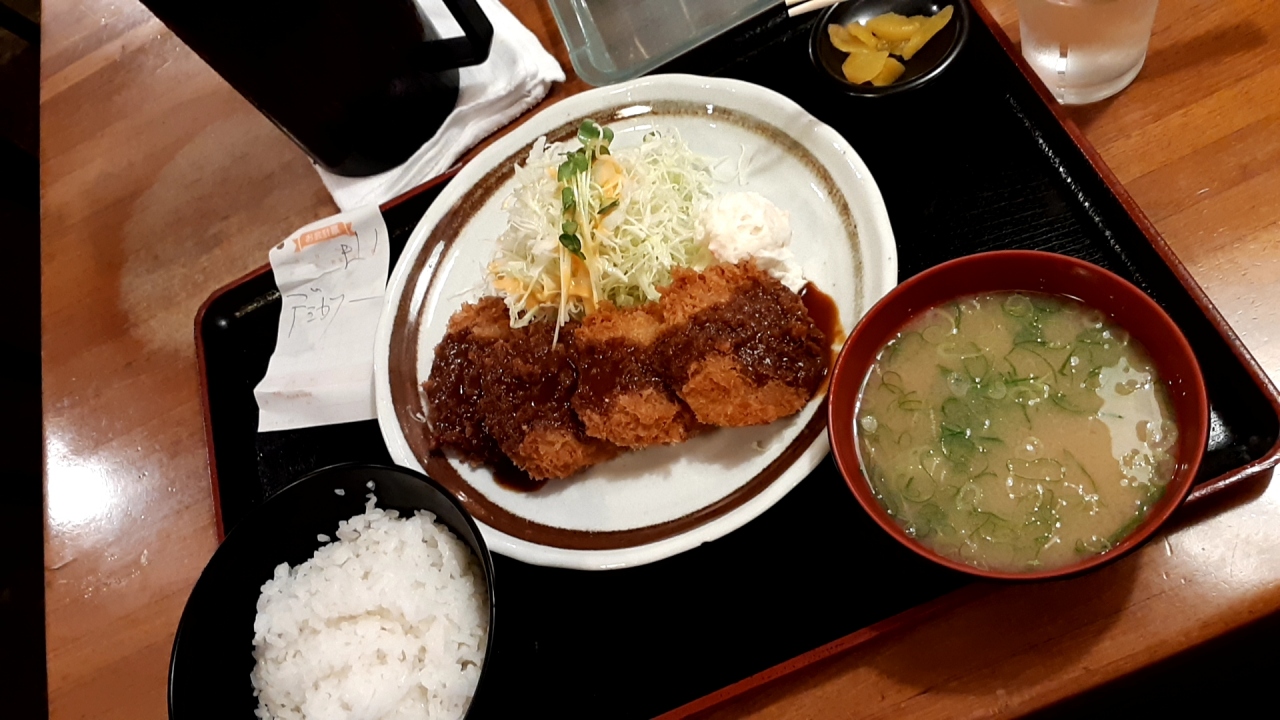 店のお勧めの「デミカツ(豚ヘレ)定食」:600円を注文。なかなか美味しかった。ご飯も良いコメを使っているようです。