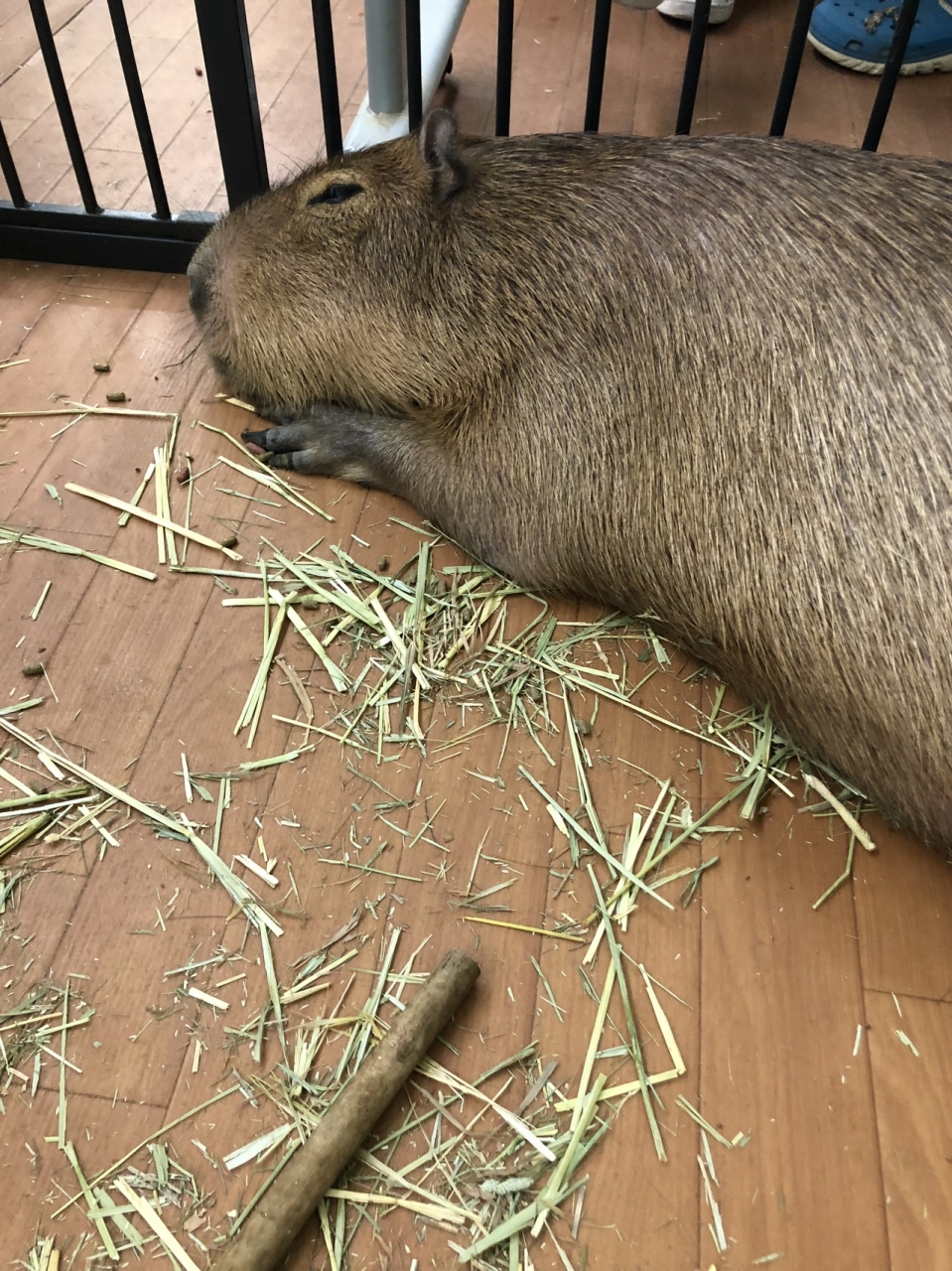 カピパラは触っても全然大丈夫でとても大人しいです。 匂いもあまりありません。