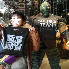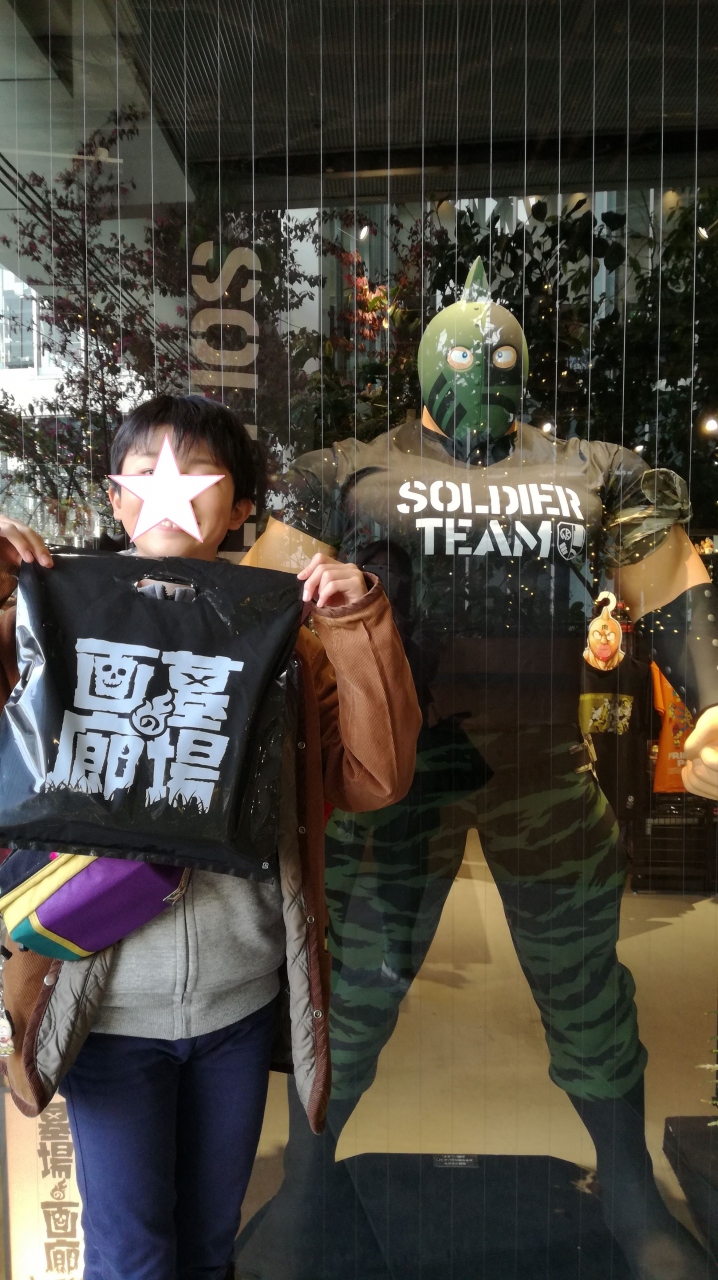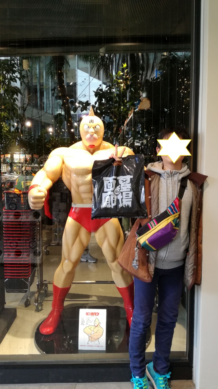 bigstepにはキン肉マンショップが入っています。キン肉マンが大好きな息子のためにやってきました。私も好きだったのですがその影響を受けたみたいです。等身大のキン肉マンやソルジャーのフィギュアが置いてあります。大阪店オリジナルのグッズもあるのでキン肉マンファンにはお勧めです。