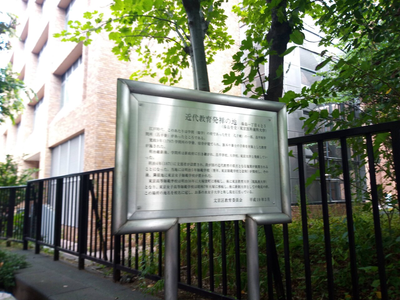 御茶ノ水駅を出て、聖橋を渡って直ぐの東京医科歯科大学の建物の脇に案内板がひっそりとありました。江戸時代、この辺りに昌平坂学問所があり、これが日本国内における近代教育の原点となったようです。御茶ノ水駅周辺には大学のキャンパスなどがたくさんありますが、歴史的な背景を考えると納得しました。
