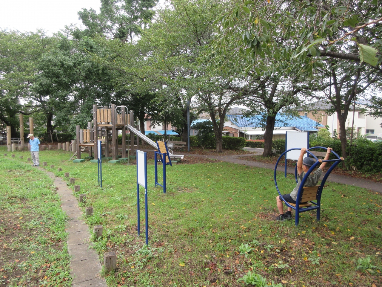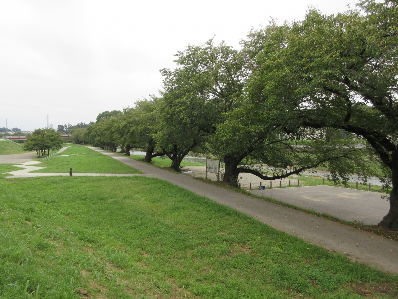 志木市役所のそばに架かるいろは橋から富士下橋までの新川岸川両側にある公園です。桜並木が特徴で、園内に旧村山快哉堂、野鳥観察壁などがあります。ブランコやロープスライダーなどがある児童遊園や健康器具も点在しています。藤棚の下や東屋にあるベンチの他に遊歩道沿いにベンチがあり休めます。訪れた週末午前は藤棚の下に地元の人たちが集まっていました。公園内を散歩する人もいました。カッパの郷志木名物カッパ像もありました。台風の影響で川沿いの草は倒れていましたが、ぽつぽつ彼岸花が咲いている静かな親水公園でした。