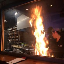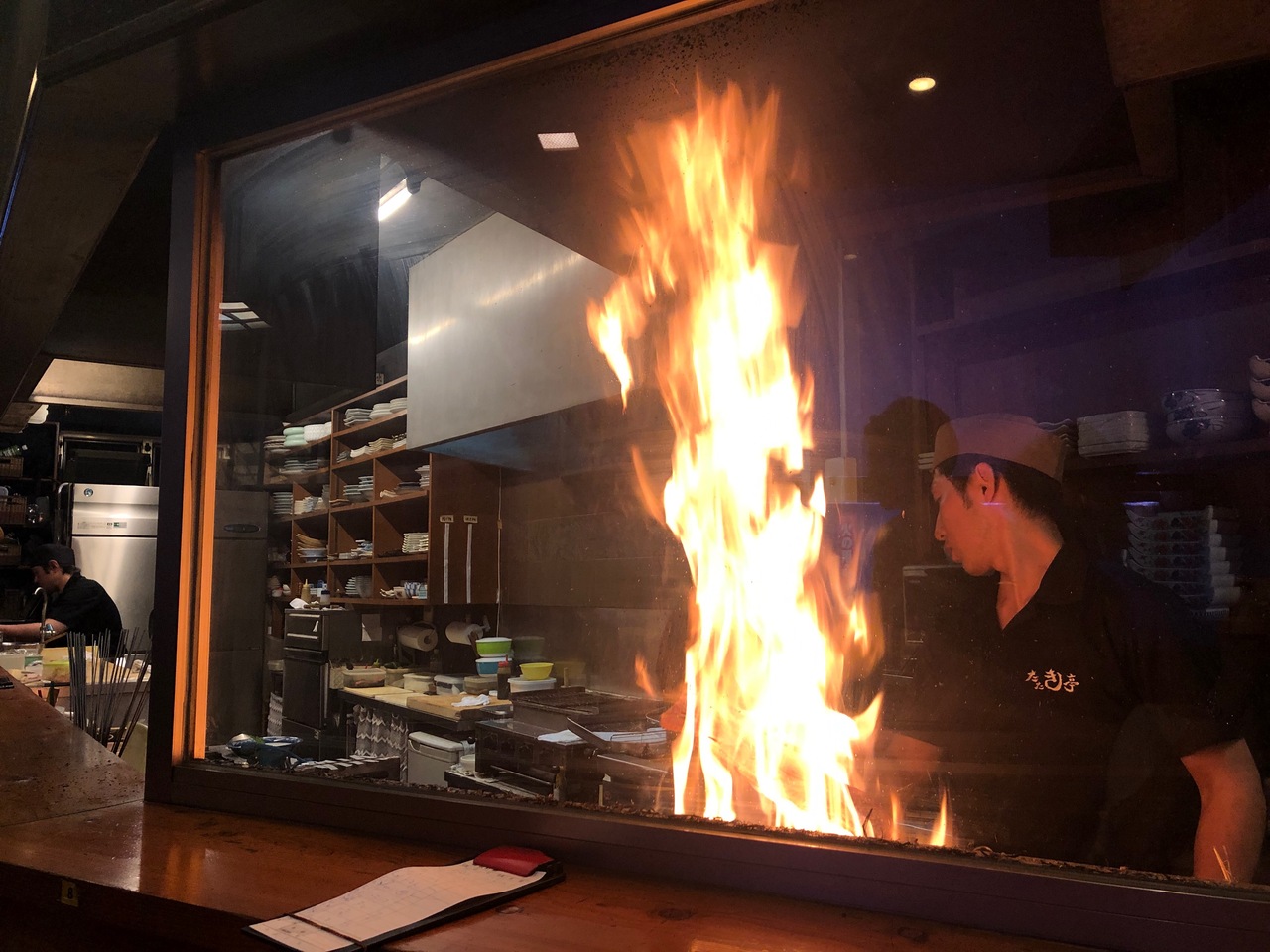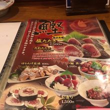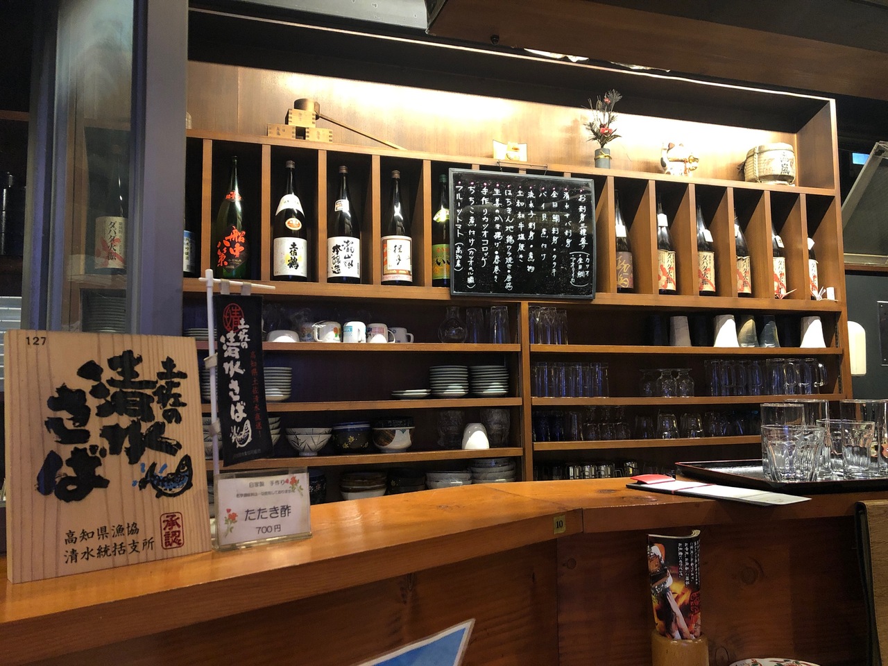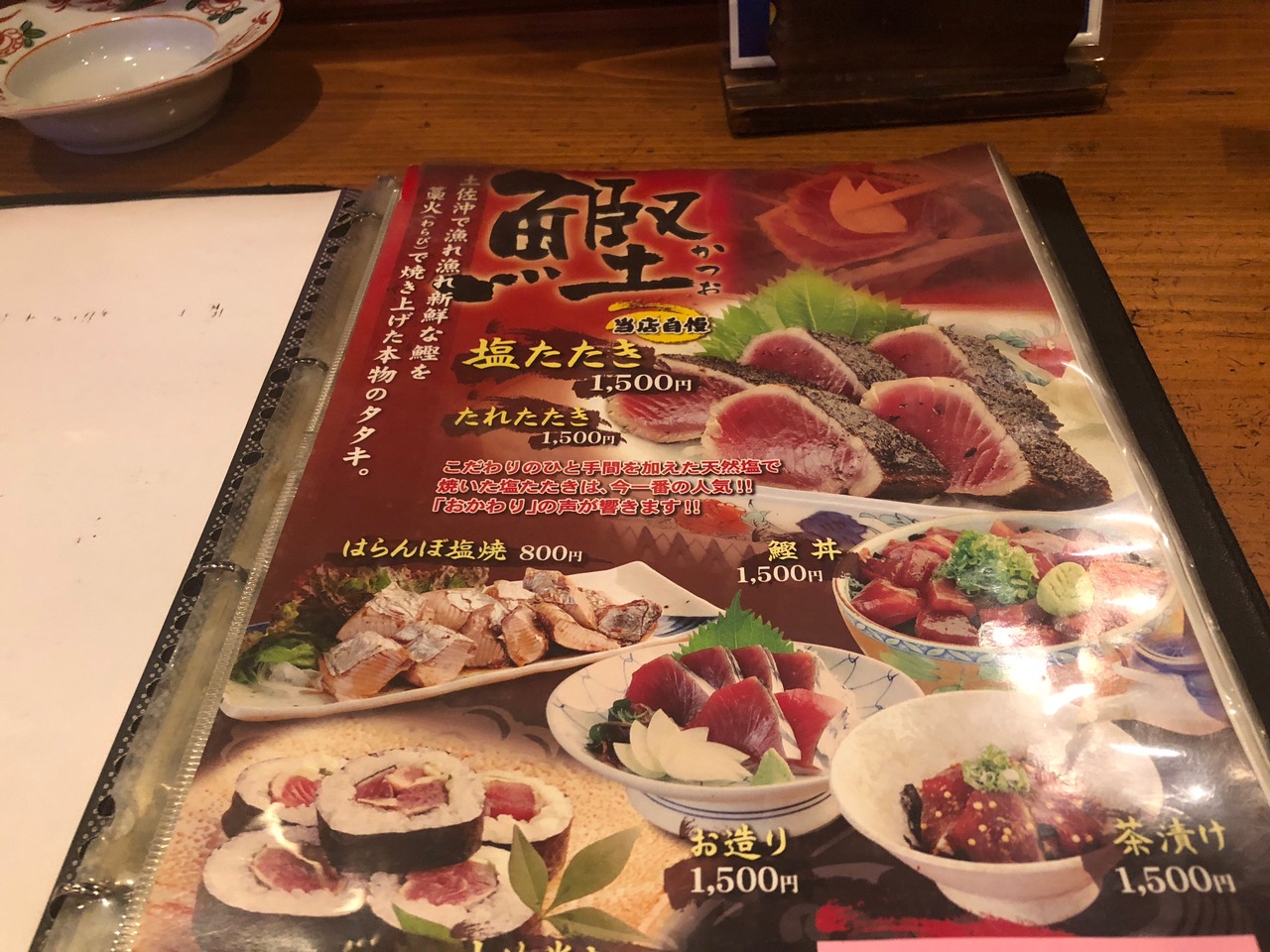 Google Mapで見つけたのですが、店内はほぼ満席で運良く入れました。カウンター席とはガラス越しで、カツオの藁焼きが見れます。