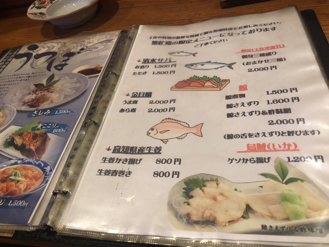 予想してなかったので驚いたのは、クジラ料理。特にクジラのさえずりは脂が乗っていてすごく美味しかったです。また高知に行った際は訪れたいと思えるお店でした。