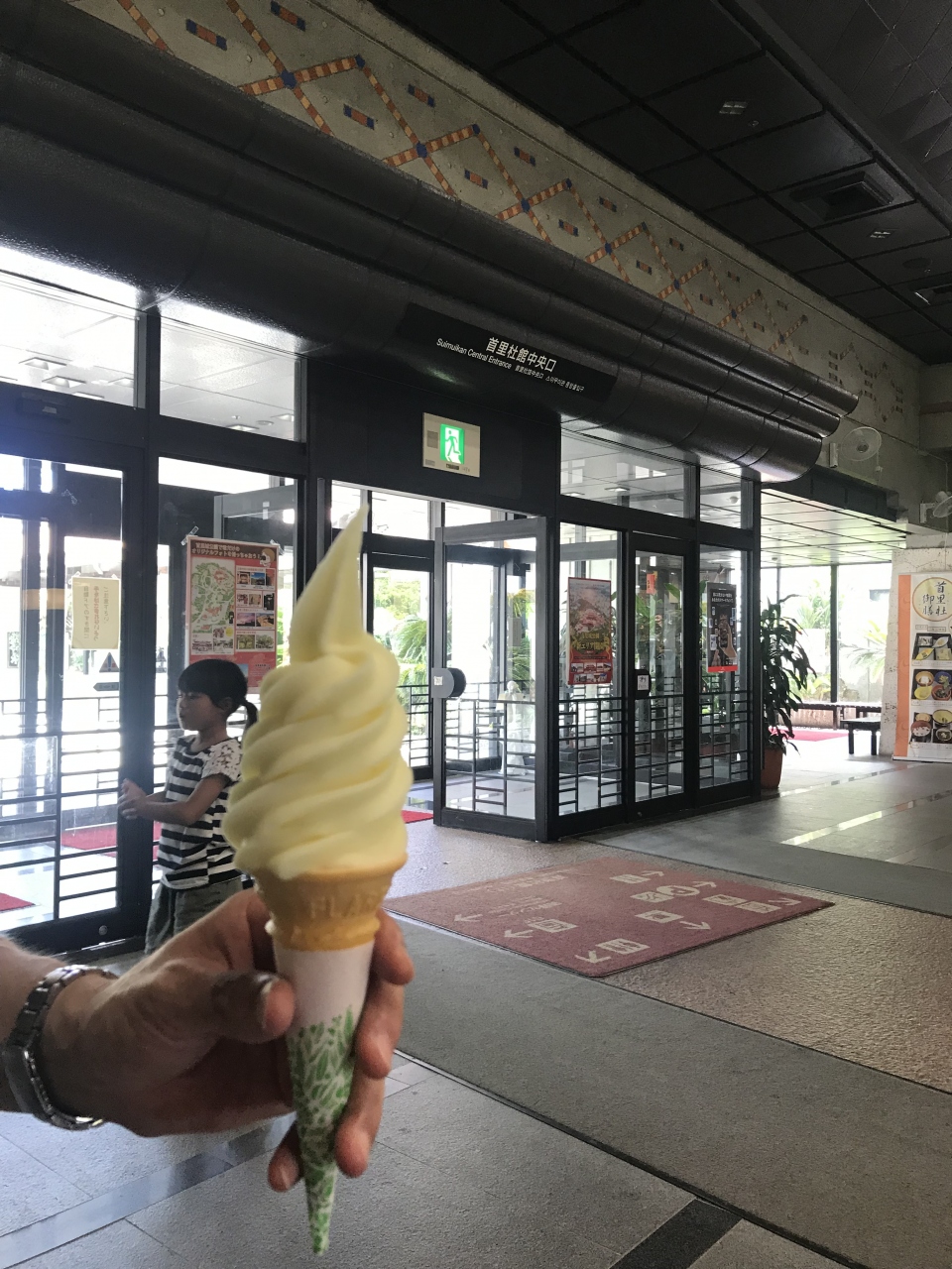 暑い時でしたが、首里杜館の中はとても涼しく、シークヮ―サーソフト買って食べました。