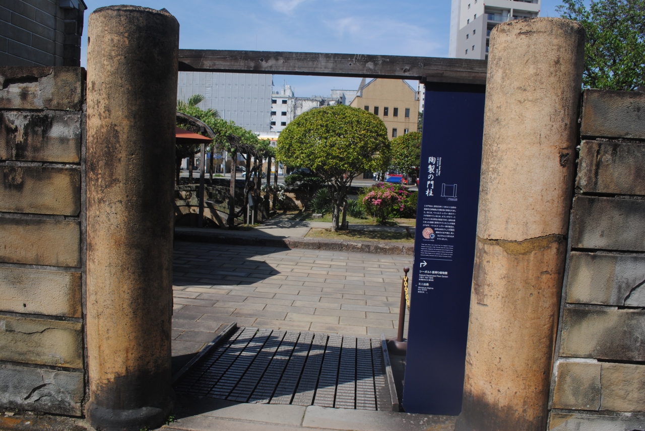 ミニチュアの出島、植物園への出入りの門柱になっています。