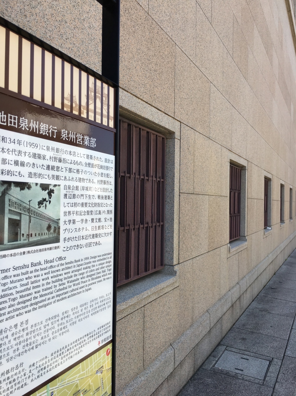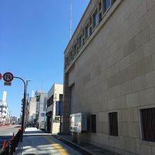 大通り沿いにあり、大きな建物で近くから見ると普通の建物に見えましたが少し離れると重厚感ある建物でした。通り沿いの中央部分に説明看板があり、美術館や博物館のような感じにも見えました。設計は日本を代表する村野藤吾です。