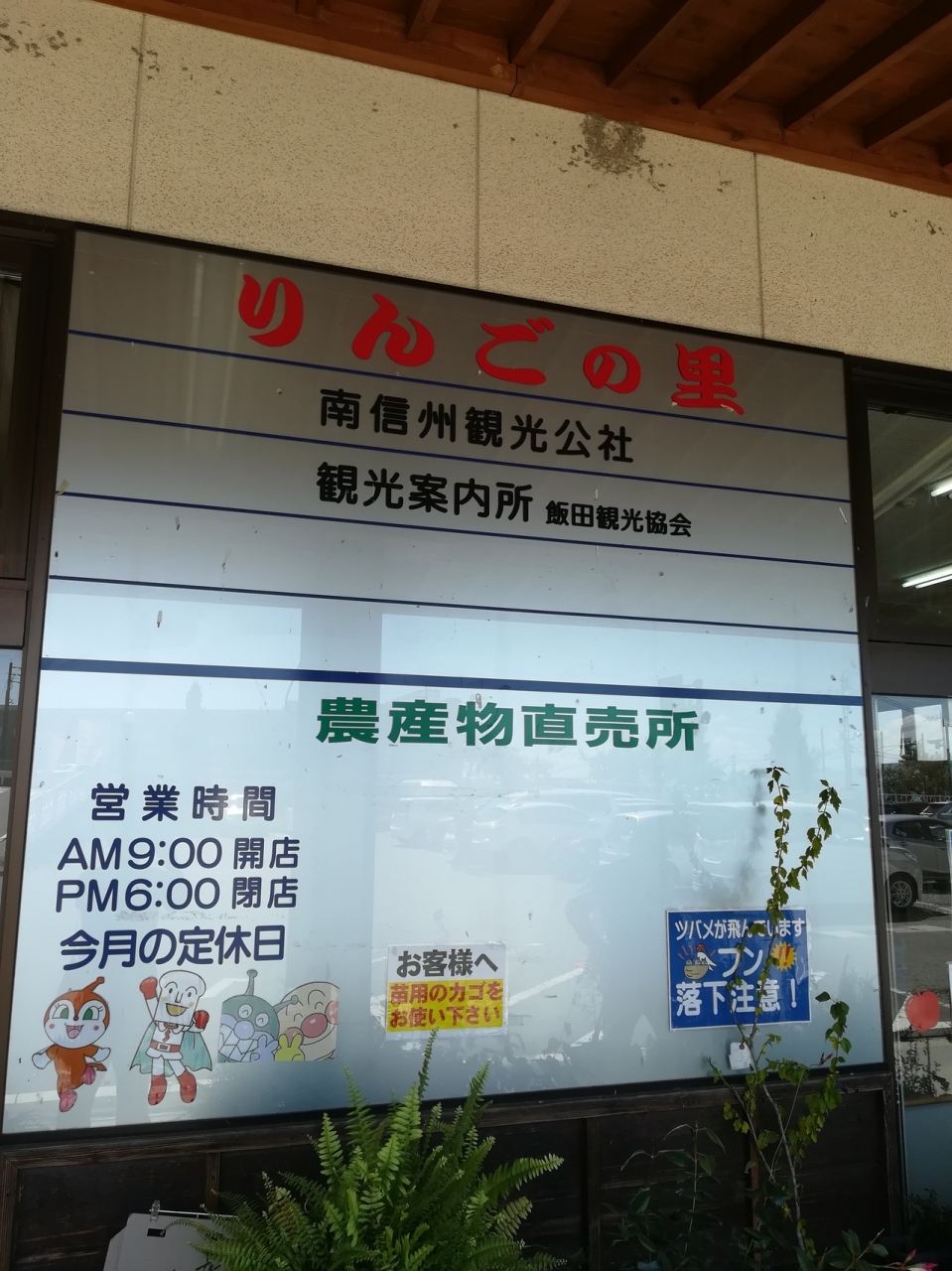 家電量販店の隣にありますです。大きな産直販売店、野菜やフルーツ、お漬物、ワイン、リンゴジュース、飯田のお土産物もたくさんあり、中央道飯田インターのすぐ近くなので高速に乗る前の最後の買い足しに便利です。