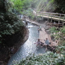 温泉温度がかなり高かったです。雨が数日振らないと川の水も少なくなり温泉の温度も上がるとききました。特に夏は雪解け水も混ざらないのでこゆい温泉だそうですよ。足つぼマッサージがあるとのことですが、河原の底を探しましたが、石は無く砂利でした。