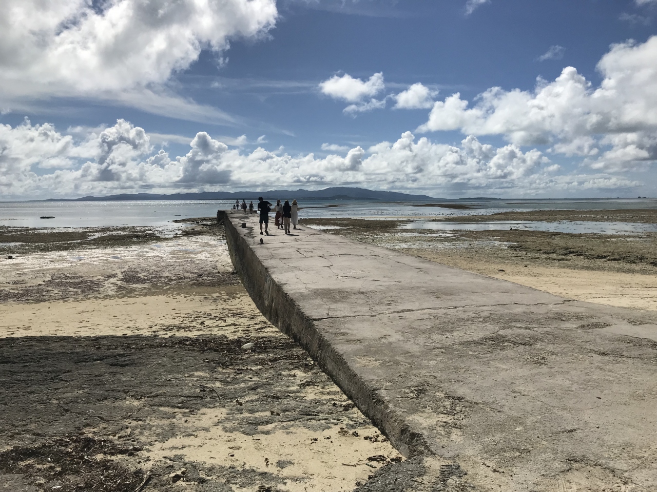 西桟橋にたどり着いたら干潮でした。桟橋の先端くらいのところまでしか水がなく、あんまり綺麗な景観ではなかったです。ただ、水はとても綺麗でした。