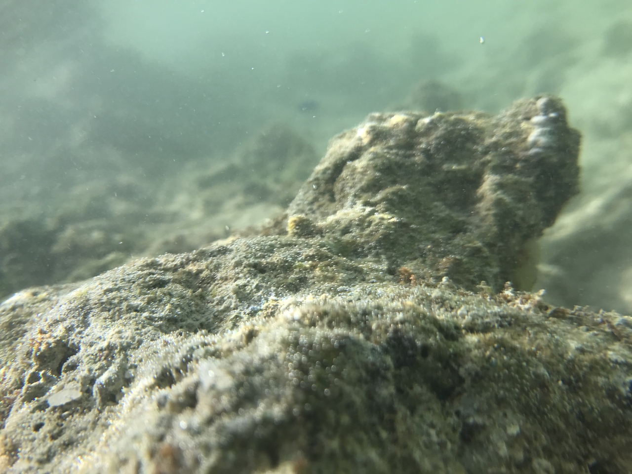 スマホの防水ケースを持ってきたので、水中の写真を撮ってみました。ナマコがものすごく多かったです。