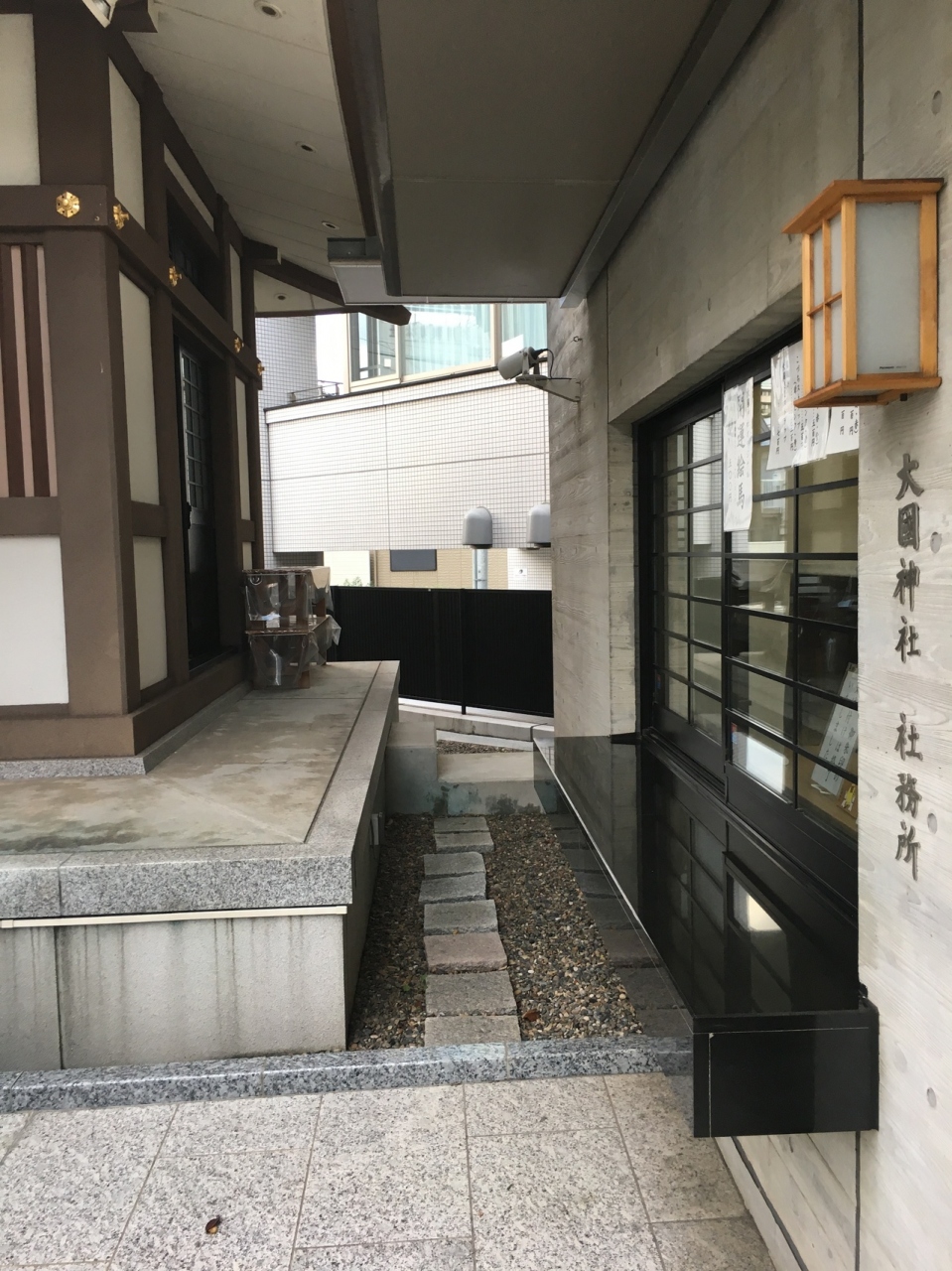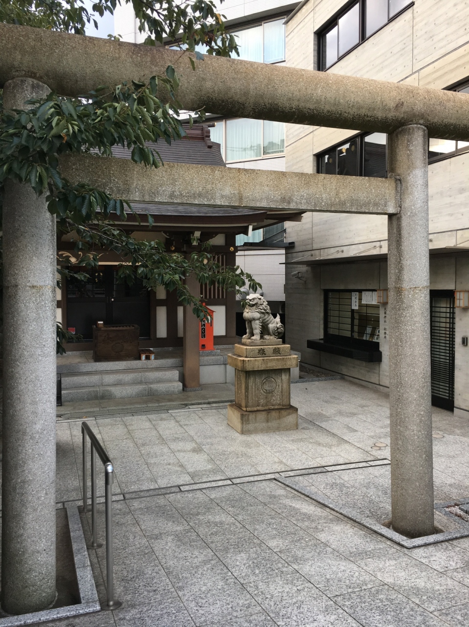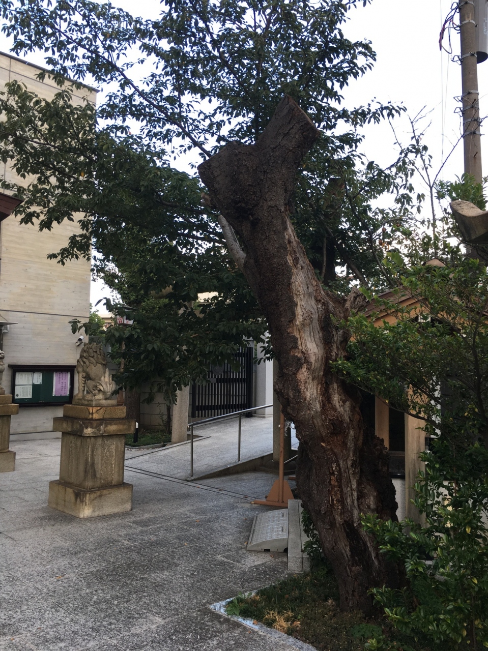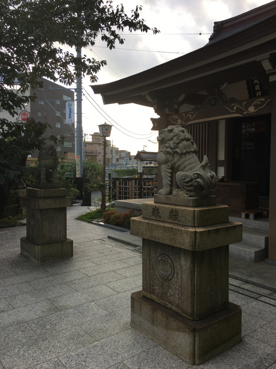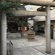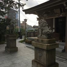 JR駒込駅の改札を出て、正面の道路を渡ったところにあり、鳥居を潜ると小さな境内で、右側に社務所があり、いくつかのお守りを販売していました。本殿の前の左右には獅子の像があって、古い大木があり、上部は切ってありました。こじんまりとした神社でした。