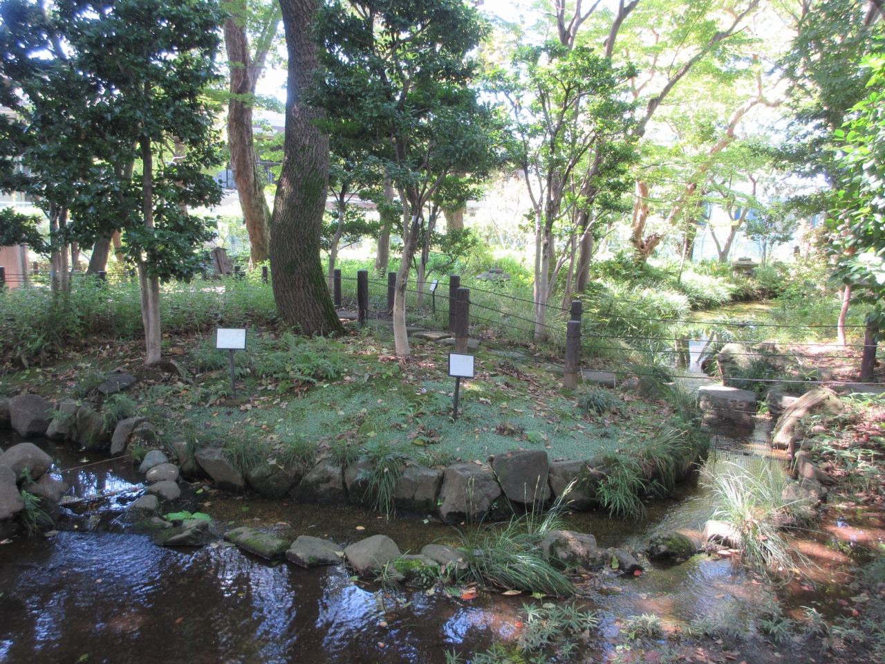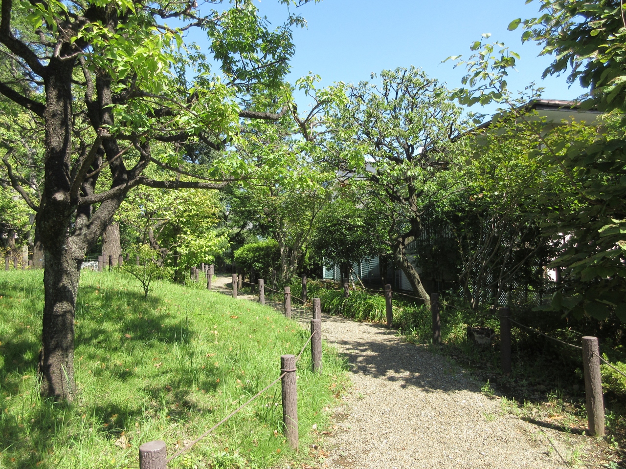 ジャーマン通り沿いに建つマツモトキヨシ横の道を入って150mほどのところに造られた緑豊かな公園です。1300坪ほどある園内には、モミジに囲まれたもみじ池、ゆっくりと水が流れる曲水、東屋などがあり、暑い日でも木陰が多いため涼しく感じられます。徳富蘇峰が手入れと散歩を日課にしていた姿が思い起こされる公園です。園内の一画には蘇峰が住んでいた建物の一部が保存された記念館も建っています。国内では珍しい、新島襄から譲り受けたカタルパの木が植えられています。5月から6月にかけて花をつけるそうですが、今年は花が咲かず残念な思いをしているとボランティアの方が嘆いていました。