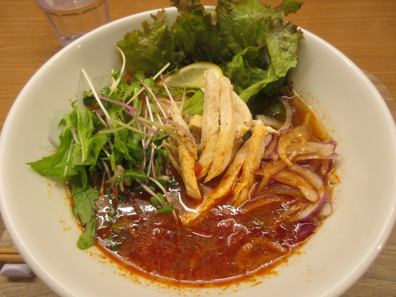 JR東京駅丸の内北口向かいに建つオアゾの地下1階にある、ベトナムの麺・フォーの専門店です。15席ほどのこじんまりした店で、昼食時には列ができるほどの人気店です。ランチは5種類のフォーから選べ、1時を過ぎると生春巻きと飲み物がついたバリューセットをオーダーすることができます。大盛りも100円プラスすれば食べられます。机上にはもやしとパクチーが入った容器が置かれ、好きなだけフォーにのせることができます。昼食時に訪れ店の外に数人が並んでいましたが、客の回転が速いためそれほど待たずに入店できました。都心で働くビジネスマンや女性が多く利用する店なので、従業員の対応も手際よく細かいことにもよく気が付き好感が持てました。