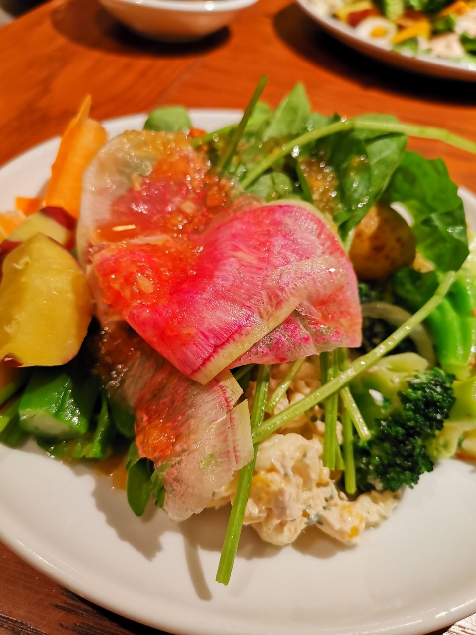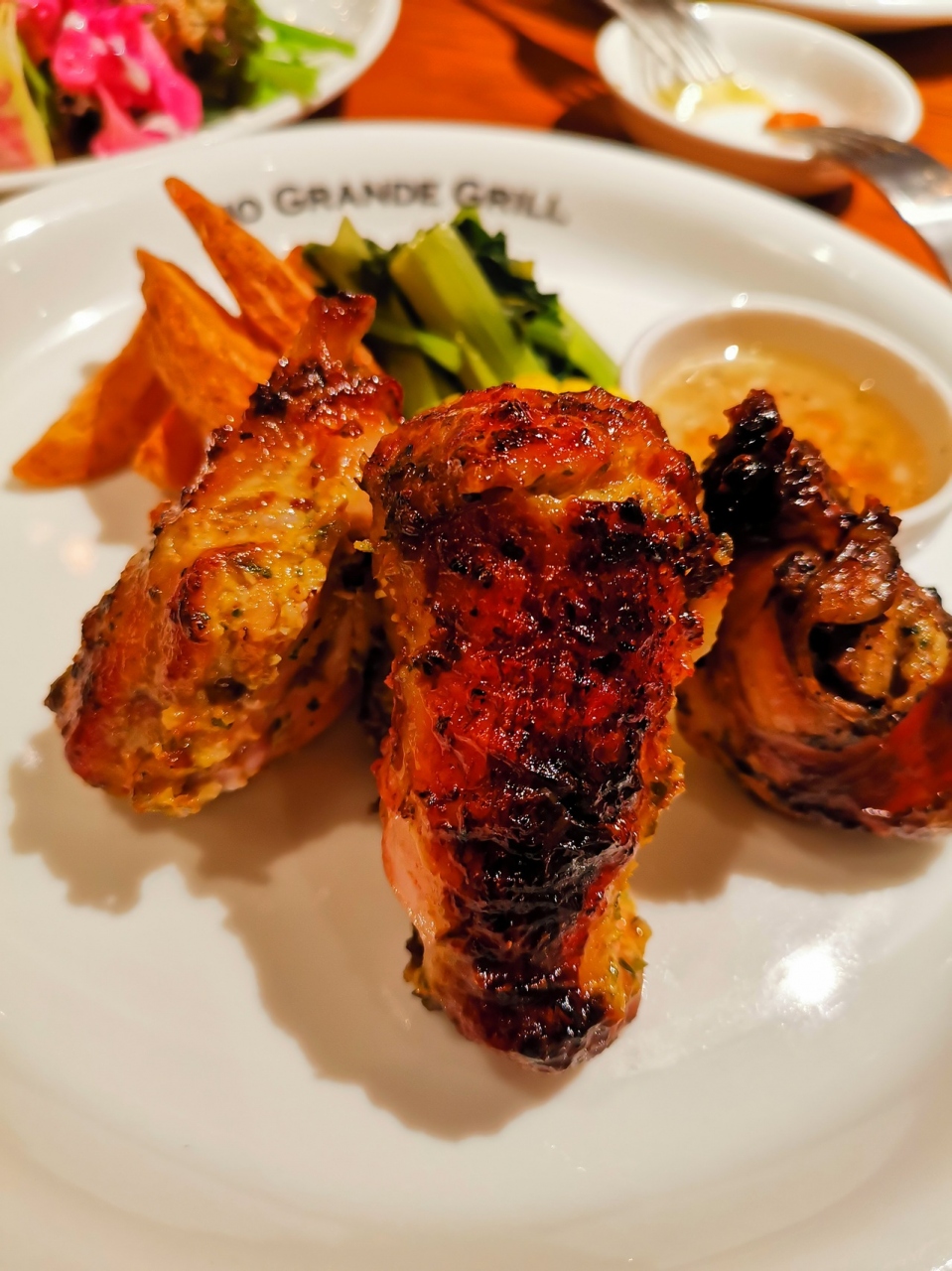 食べ放題ではなく、本日のビーフのセットとチキンのセットを注文しました。セットにはサラダバーが付いています。サラダバーにはブラジル風の温野菜メニューもあり美味しくいただきました。楽しみにしていたメインのお料理は、ビーフは固くてチキンは骨がたくさん(食べにくい) 付け合わせのソースもイマイチで、テーブルに塩コショウなどの調味料が欲しかったです。