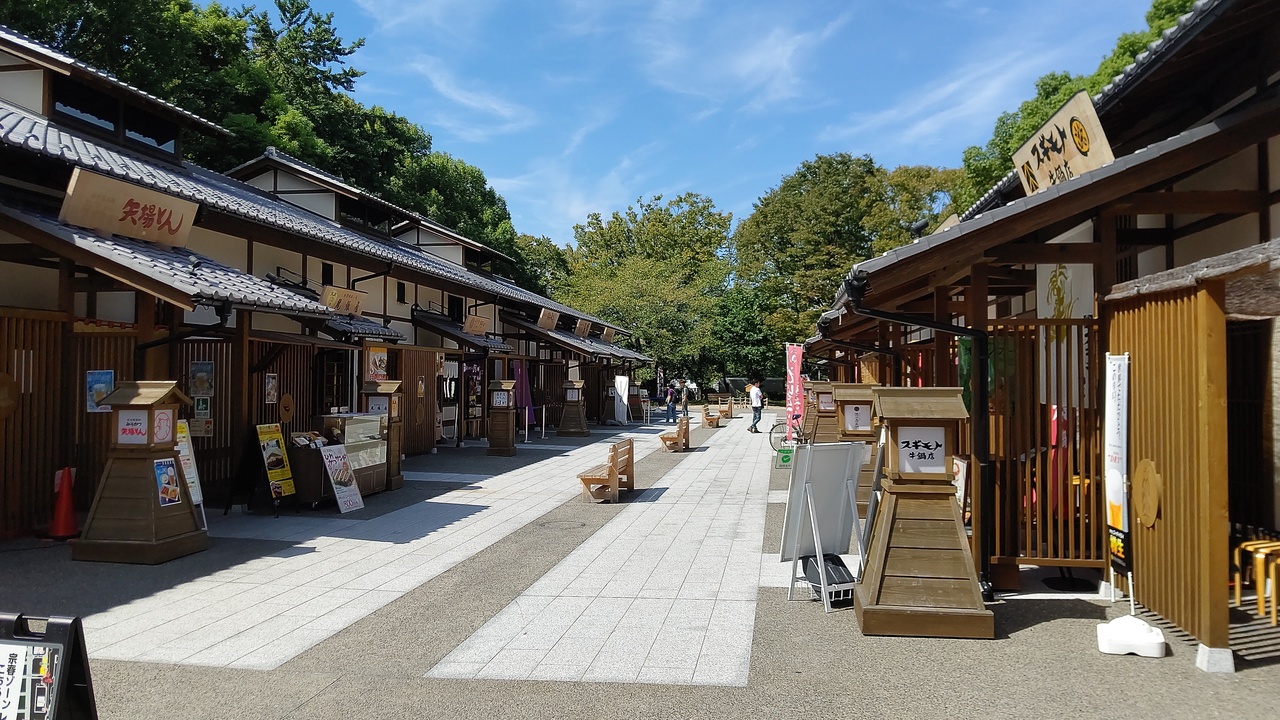 金シャチ横丁には宗春ゾーンと義直ゾーンがあります。義直ゾーンにあるお店の方が高級で割高なお店が多いです。名古屋城の正門側という立地の面が要因でしょうか。お互いの位置は結構離れています。いずれも名古屋名物がありますのでお好みでどうぞ。