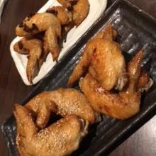 今回は、生牡蠣・手羽先・お刺身5点盛り・活ツブ刺身を注文。
