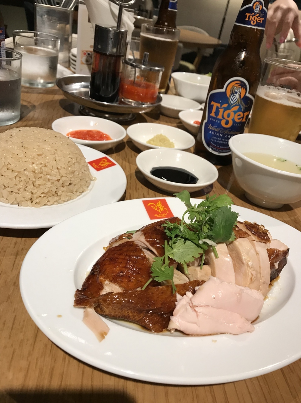 シンガポールで食べたチキンライスがまた食べたくて伺いました。チキンライスはスチームとローストがありましたが、スチームにしました。パクチーが好きな私は良かったですが、友達はパクチーも鳥の皮もよけて食べていました。席を予約しましたが、以外と空いていました。