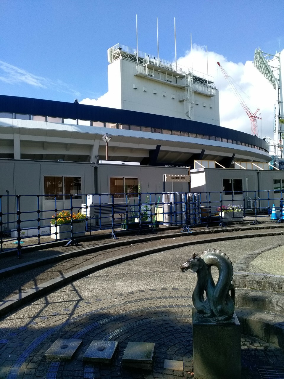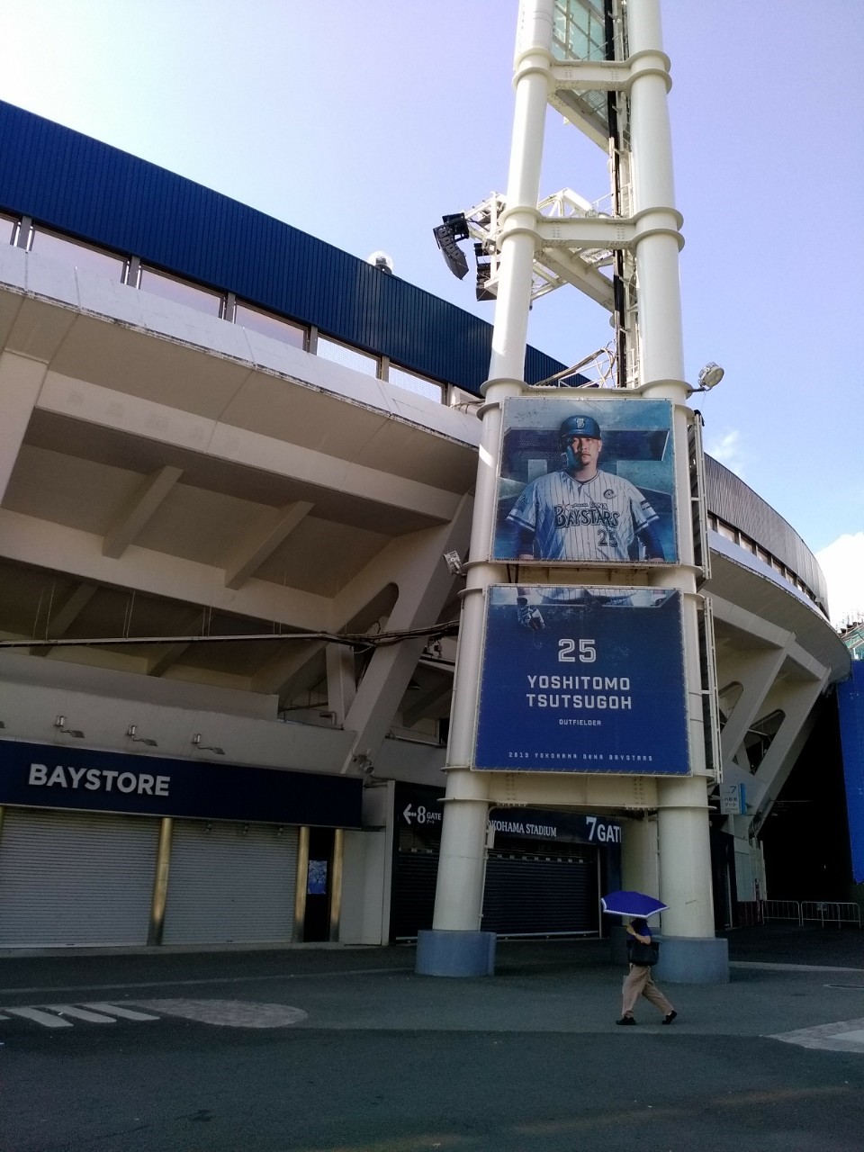 スタジアム外部にもベイスターズの主力選手の大きな写真が掲げられて本拠地をアピールしていました。今シーズンは優勝を争うくらいまで力をつけてきているのでスタジアムでの応援も熱が上がりますね。一度中で見てみたいですね。