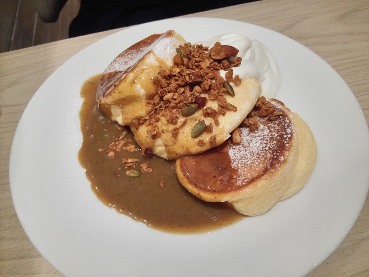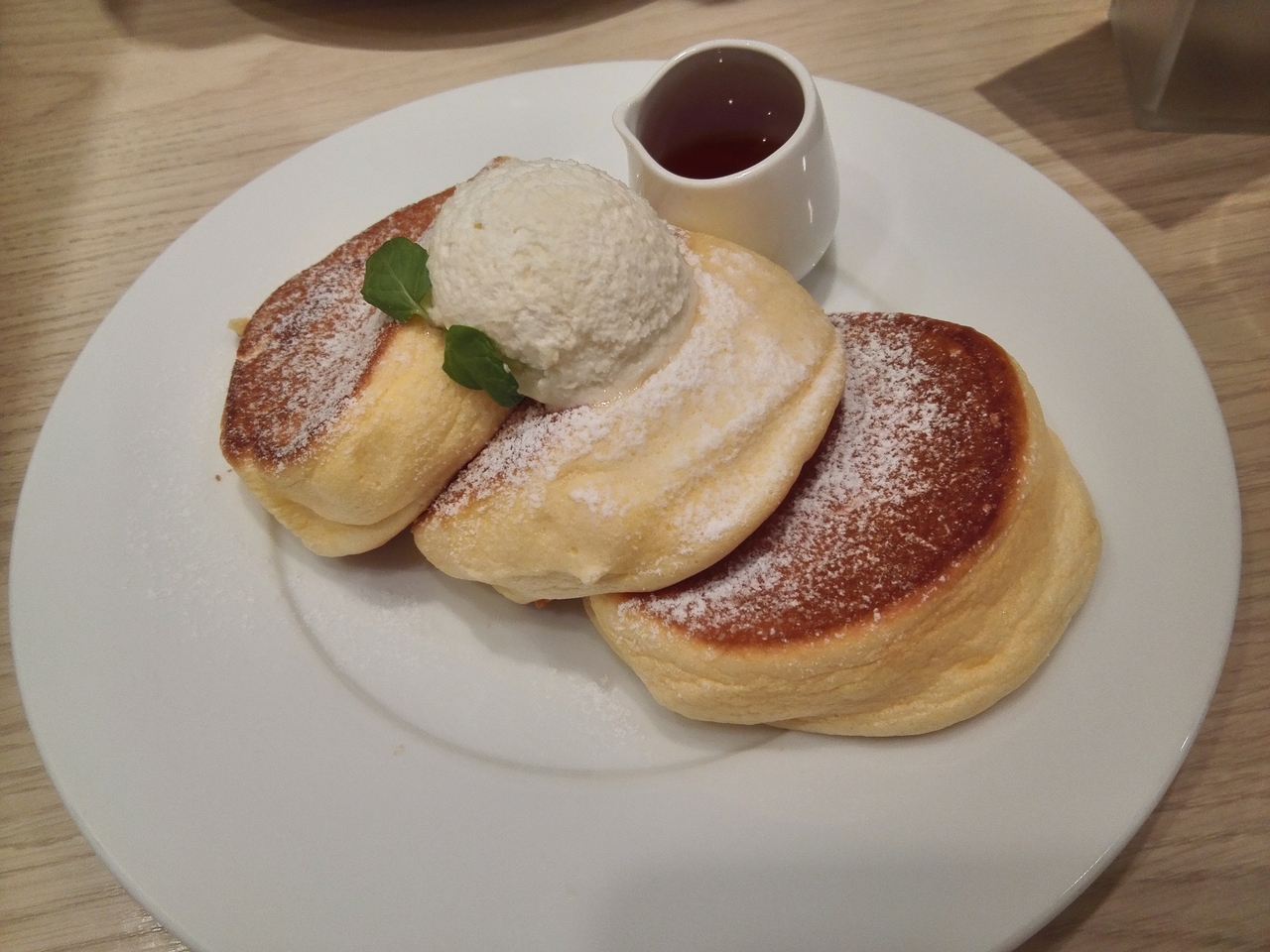 幸せのパンケーキは、ふわふわで添えてあるクリームがちょうどよい甘さで絶妙に美味しかったです。ペロリと完食してしまいました。
