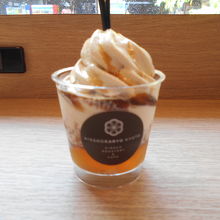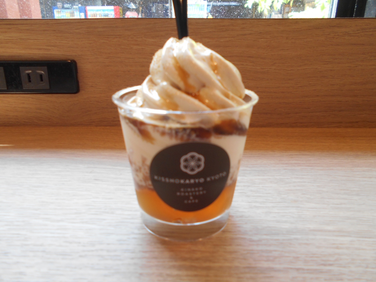 錦市場の近くのお店に行きました。新しいお店です。きなこパフェを食べて見たかったのですが、待ち時間が長そうで断念しました。テイクアウト用専用で、ミニパフェやソフトクリームがあり、こちらはすぐに買えそうだったのでテイクアウトにしました。店内で食べてもよいようです。(喫茶ルームとはちがいますが)ミニパフェもおいしかったです。