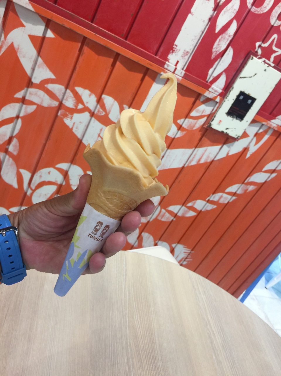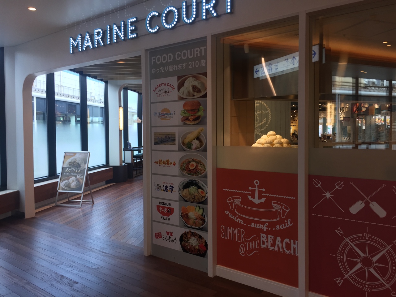 海ほたるパーキングエリアのフードコートです。あさりやカフェのびわソフト400円をいただきましたよ。