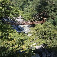 口コミでは怖い、怖くない両方の意見がありますが、リアルに怖かったです。まず足元の板の間隔が予想以上に広く、これが怖さの要素1つです。また橋の中間に来ると捕まって歩いてきた手持ちの部分が緩くなり前後に揺れるので安定感が失われ更に怖くなります。そして観光客が多く中にはワザと揺らす人がいるため迷惑でした。景色を見る余裕は一切なくなんとか渡り切りました。スリルのある観光スポットとしてはかなり価値があると思います。