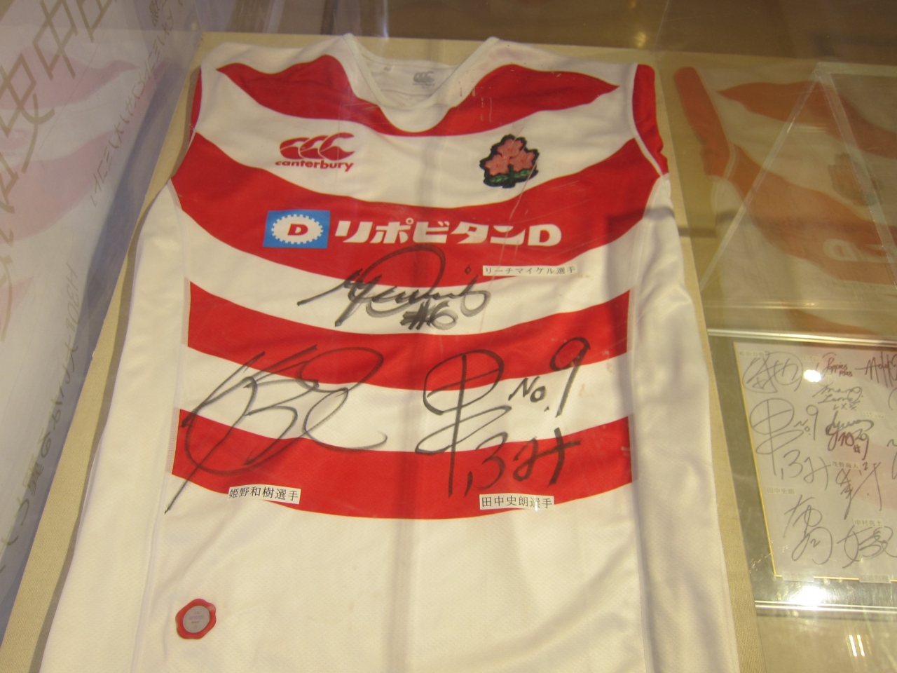 今年はラグビーワールドカップの図柄なので、1階ではビデオ映像や、ラグビー選手のサインの展示などがされていました。