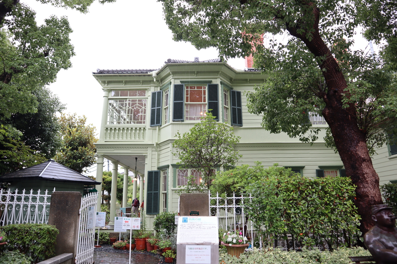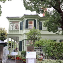このあたり一体はたくさんの異人館が点在していますが、その中でもこちらは淡いグリーンの外観がとても素敵でした。アメリカ総領事の館として建てられ、国の重要文化財にも指定されています。洋館の前はちょっとした広場になっています。