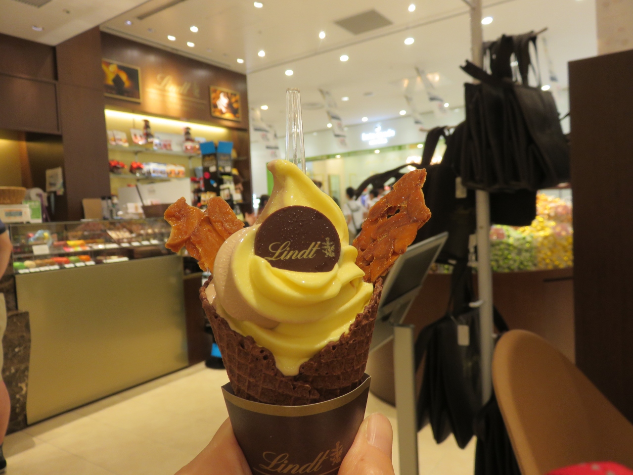 スイスの高級チョコレートリンツ。駅前のパルコ2に入っていました。板チョコやアソートチョコや量り売りのチョコなど、いろいろ売っています。ときどき行っている試食のチョコが、おいしい。