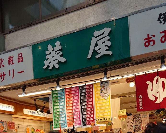 道後ハイカラ通りにある土産物店です。ちょと古さを感じさせるお店ですが、愛媛のお土産としてよく目にする「坊ちゃん団子」など有名どころのお菓子類は揃っていました。他に今治タオルや愛媛のキャラクターみきゃんのグッズなどもありお土産購入には便利です。