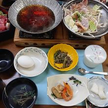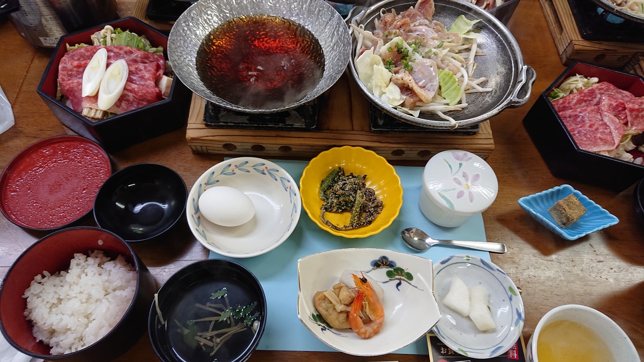 隣の人との距離は近い状態ですが、食事は期待していませんでしたが、普通でした。飛騨牛のすき焼きはあまり火を通さない方がおいしく食べられました。