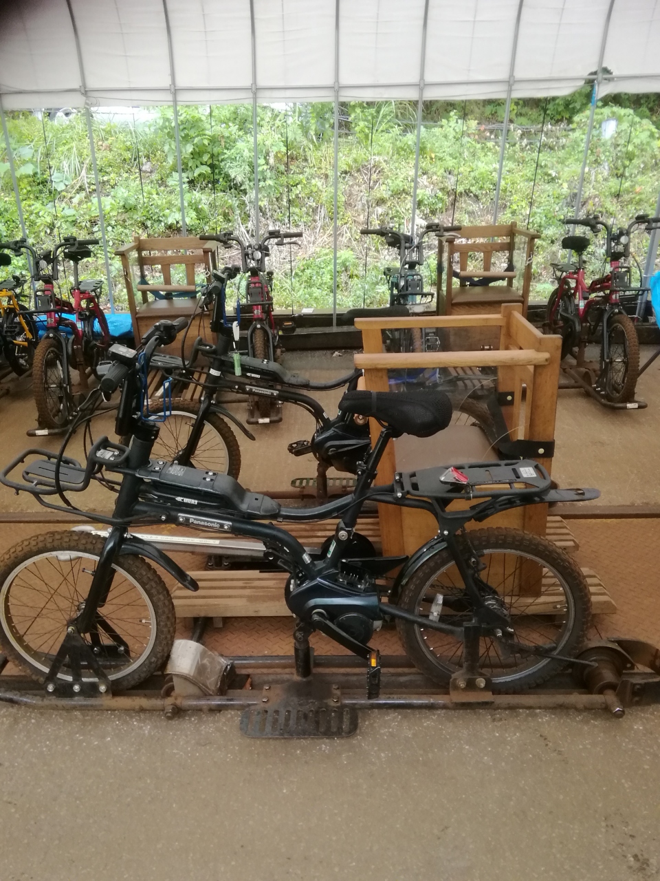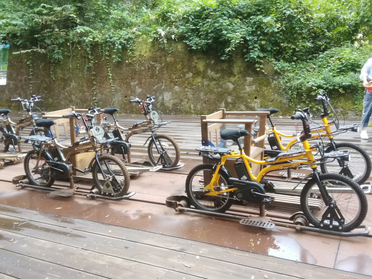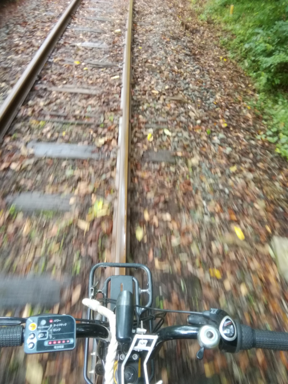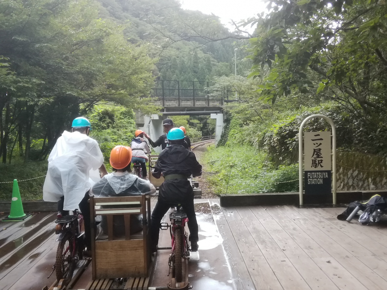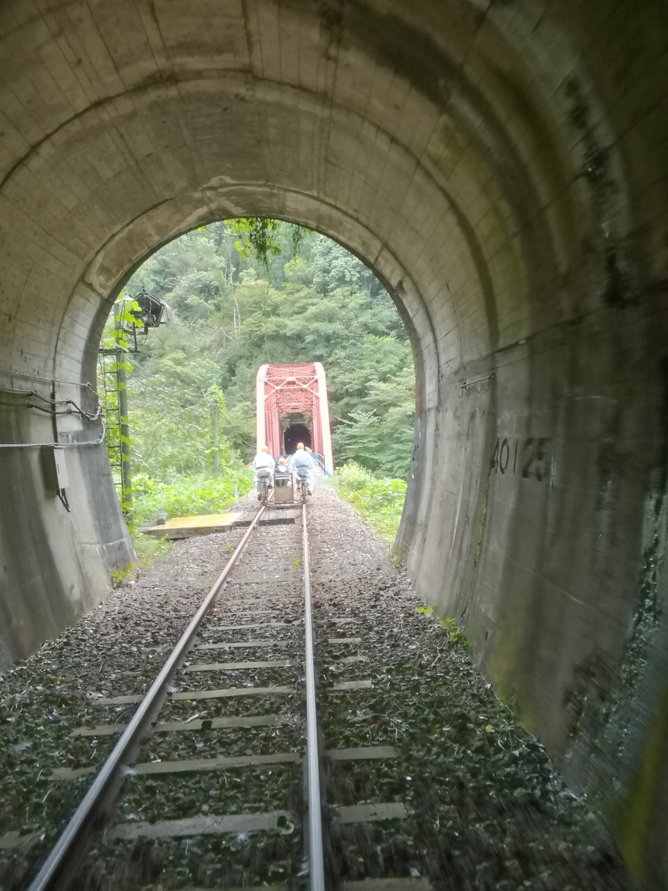 レールマウンテンバイク ”Gattan Go”は神岡の鉄道廃線跡を利用した新感覚の乗り物です。コースはまちなかと渓谷コースの2か所ありますが、今回は渓谷コースを走りました。昔の鉄道駅の漆山駅に集合し、そこから渓谷沿いに二ッ屋駅まで往復約6.6kmのコースです。ヘルメット装着でマウンテンバイクのペダルをこぐことで前進できスムーズにレール上を走行します。渓谷沿いに進み、鉄橋やトンネルもあります。新緑や紅葉の時期と色々な情景が楽しめます。電動付き自転車なのでこいでいても負荷はあまりありません。これからの季節、最高のサイクリングが楽しめます。