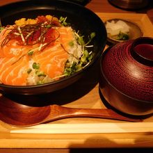大阪駅近くの「グランフロント大阪南館」7階のレストランフロアにあるお店です。週末のお昼時で混んでいましたが、一人でも入りやすい雰囲気で、「割烹屋さんのお昼ご飯」と書かれた「海飯」のメニューが美味しそうだったので、入ってみました。さくっとお昼ご飯を頂く事が出来て良かったです。