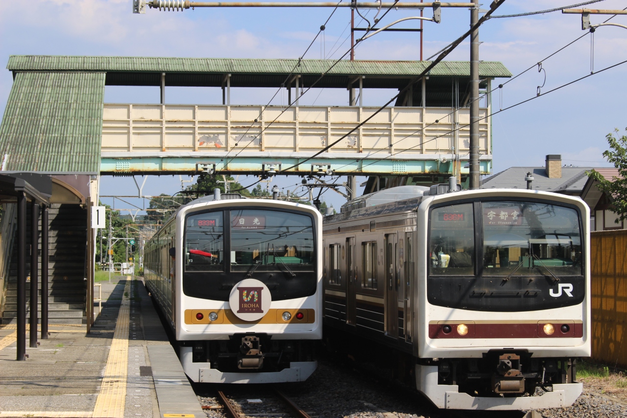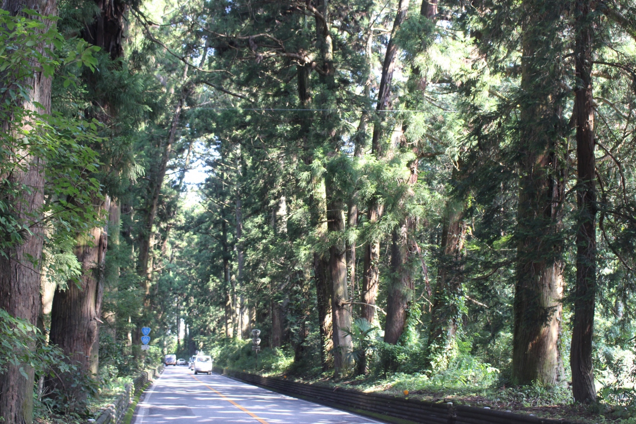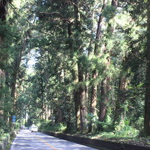 この駅を降りてすぐの国道121号線、旧日光例幣使街道に見事な日光杉並木が見れます。