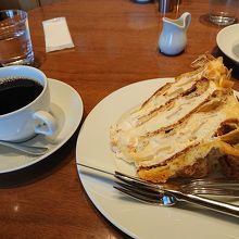 パイ生地と生クリーム、カスタードクリーム、洋梨が何層にも重なっています。