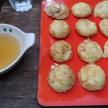 垂水駅からすぐの垂水銀座通りの一番東側にある玉子焼=明石焼きのお店が蛸兵です。店内はレトロ感のあるカウンターがあるだけです。頂いたのは看板メニューの玉子焼。四角い赤い板に12個乗った玉子焼きはフワフワ、アツアツで、三つ葉を入れた出汁によく合います。