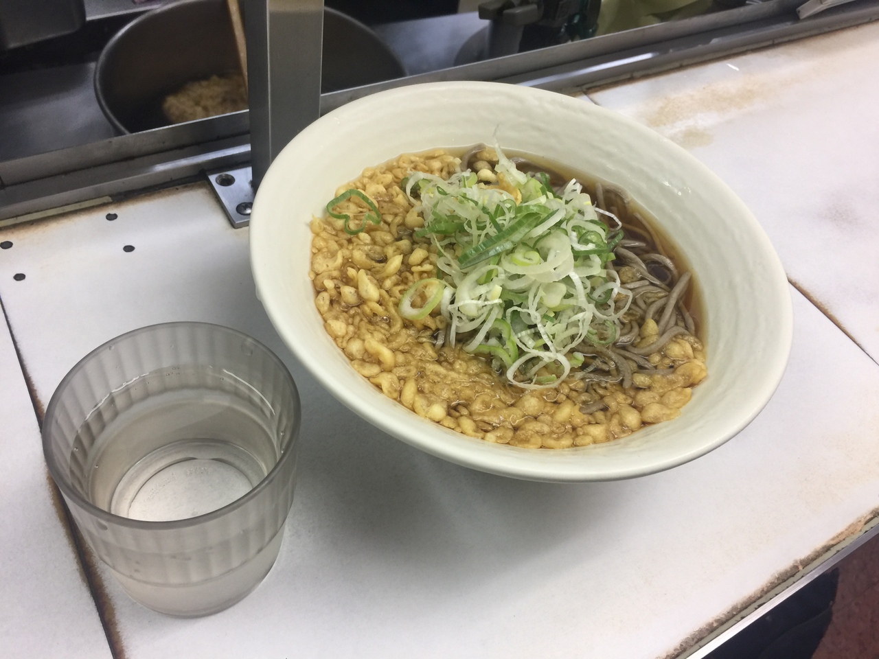 食べたのはたぬき蕎麦380円!色の濃いスープですね!なかなか美味しいです。