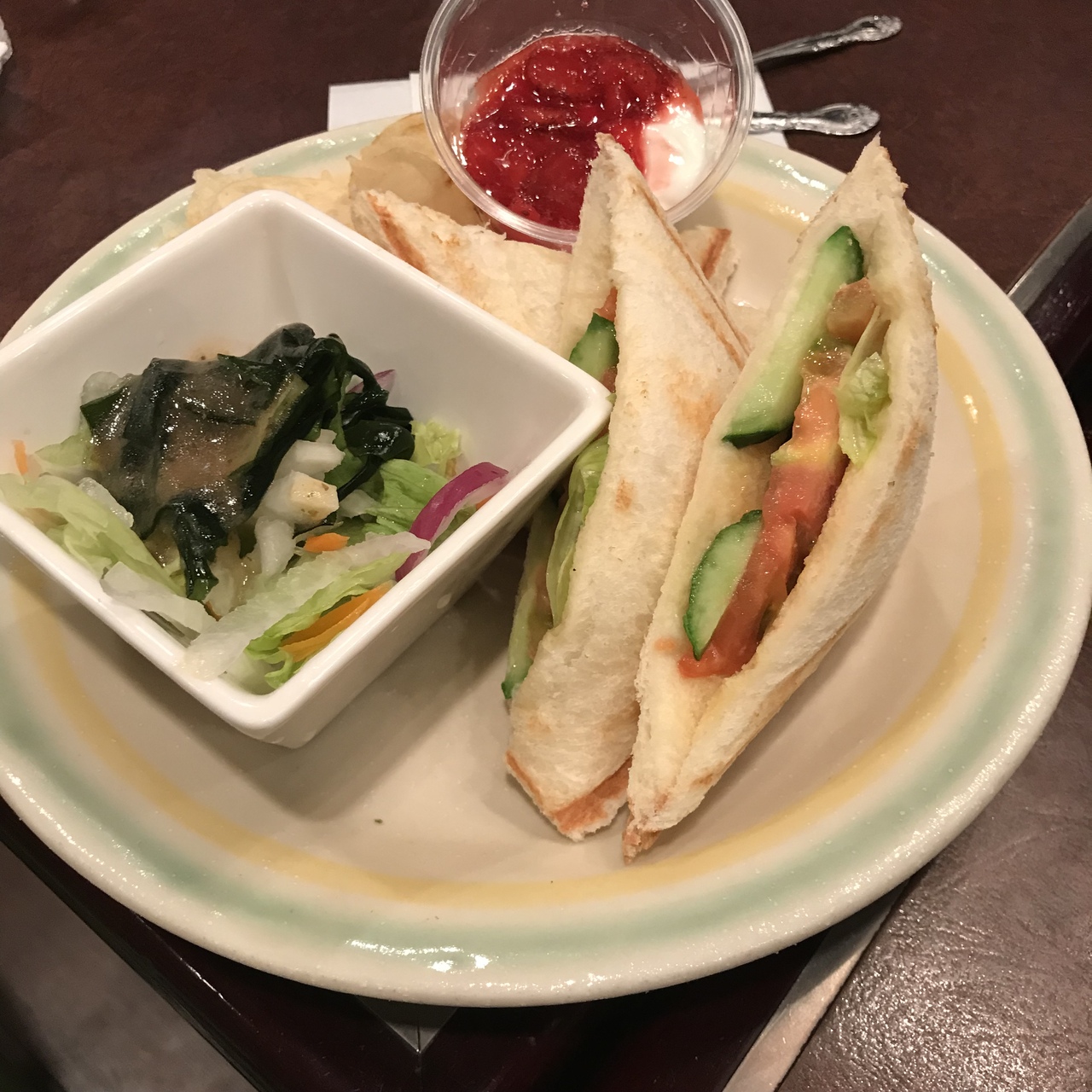 ホットサンドのモーニングが、サラダ、ヨーグルト、ドリンクがついて700円でした。お得感はあまり感じませんでしたが、味は美味しかったので満足です。