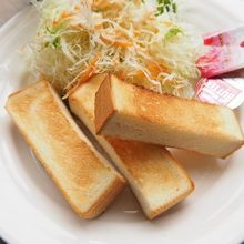 トーストと、サラダから成り、バターとジャムが添えられていた。