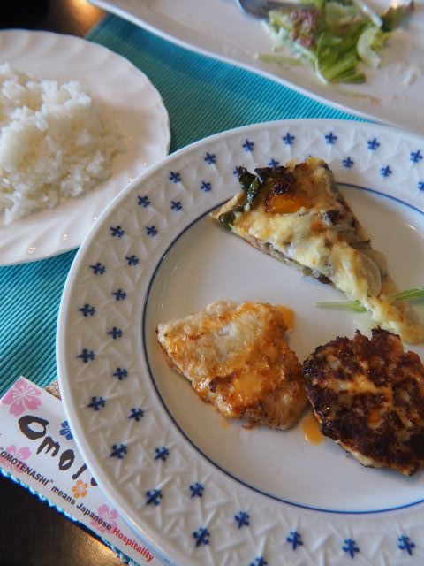 メインには、魚料理を選んだ。タラとシーフードのハンバーグで、キッシュも提供された。魚のハンバーグというのは、新鮮に感じた。