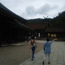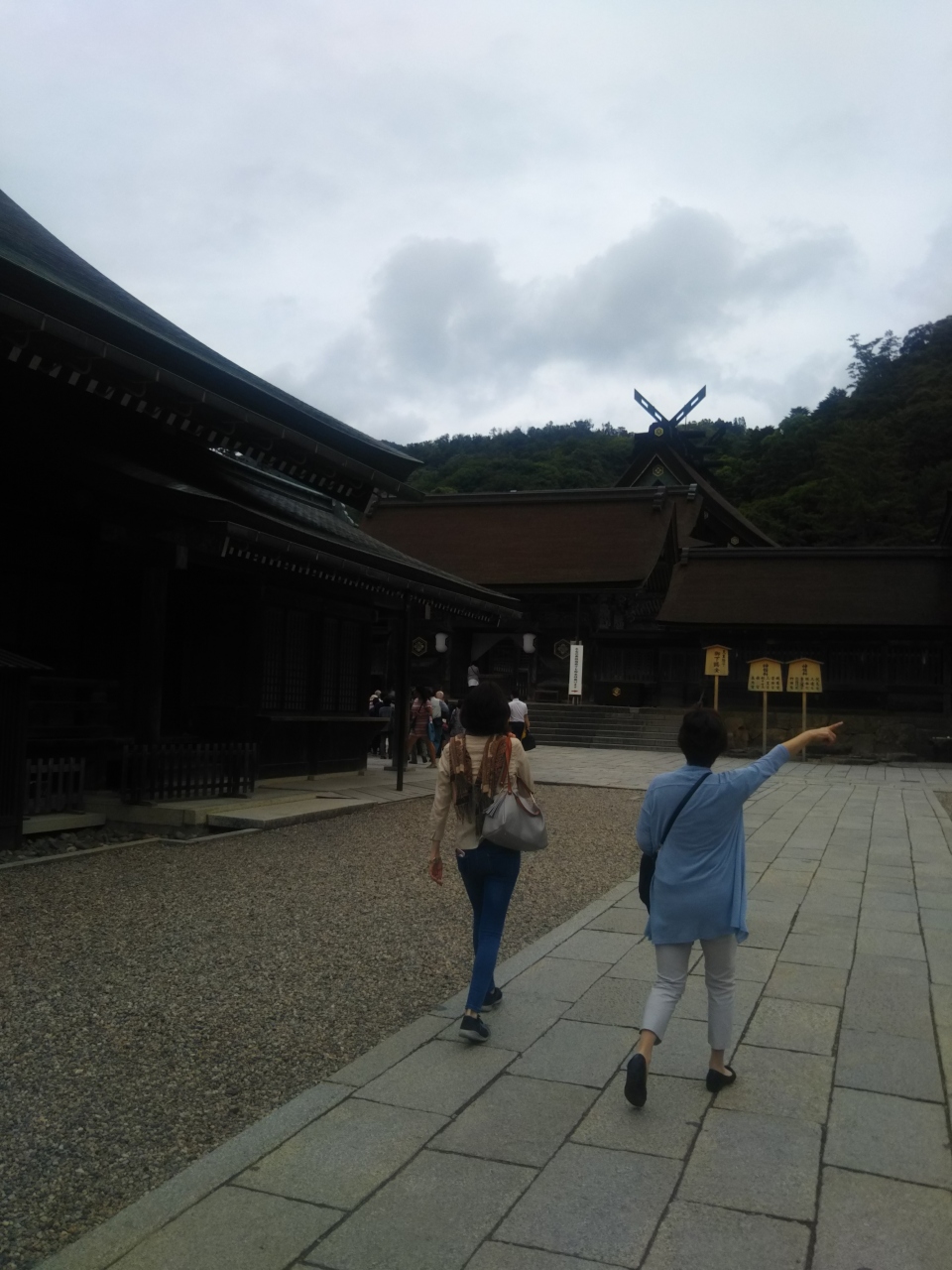 出雲大社です。いかにも清浄で聖なる場所という感じがします。正面の鳥居から入って行くと坂道があり御本殿までは距離がありますが雰囲気を楽しみながら行くとそんなに時間はかかりません。お参りして本殿を一周しました。