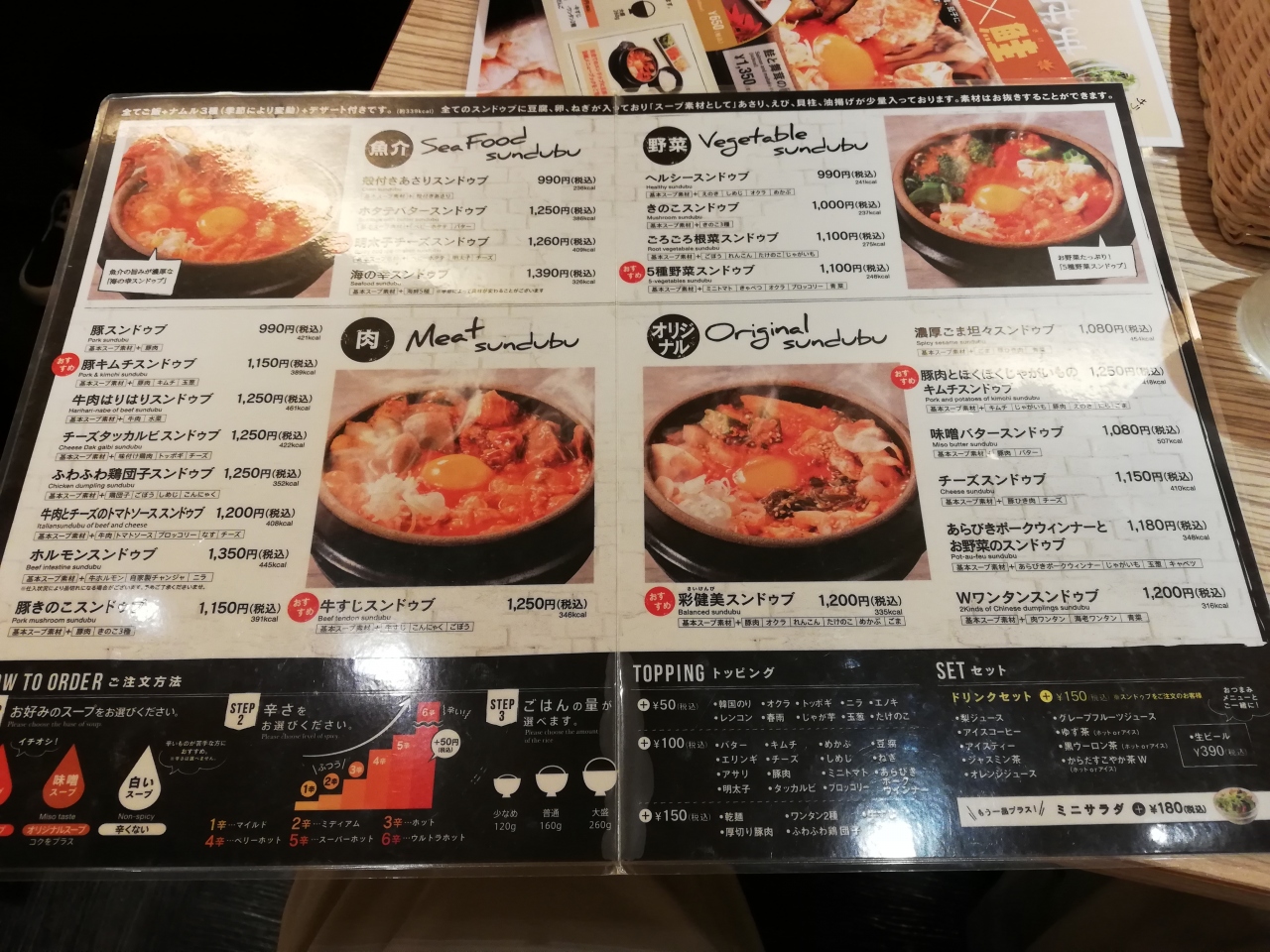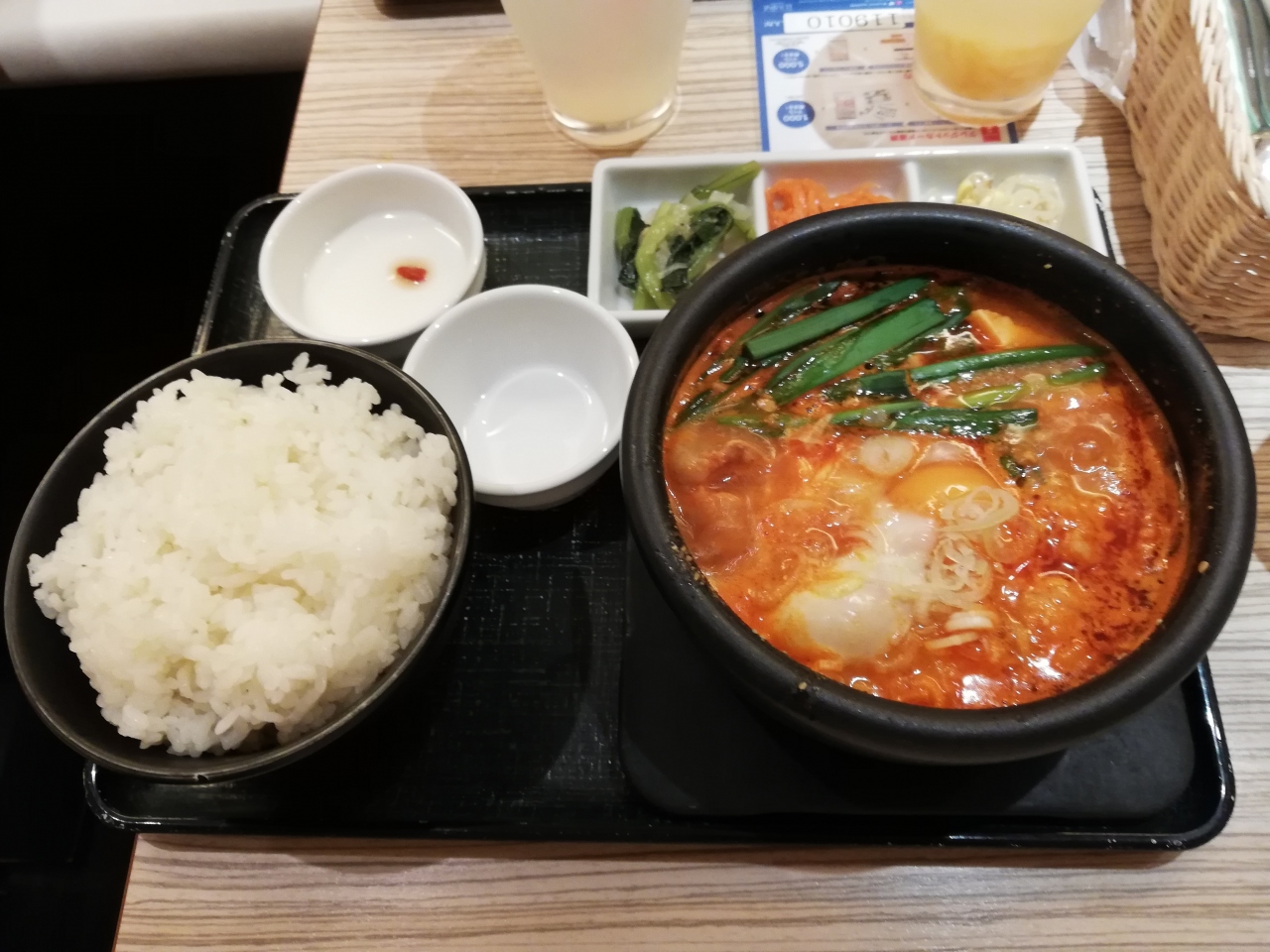 土曜日のランチに利用しました。14時過ぎの入店でしたが、ほぼ満席でした。帰る時には、空いていましたよ。店内は私以外はすべて女性で若い方が多かったですね。ホルモンスンドゥブ、アサリ追加で、味噌スープ、1辛を選択しました。ドリンクセットで梨ジュースを選択しましたよ。混雑していた割には、意外に早くて10分程で提供となりました。ご飯の量は大・中・小で注文しますが、お替りは無料になっています。