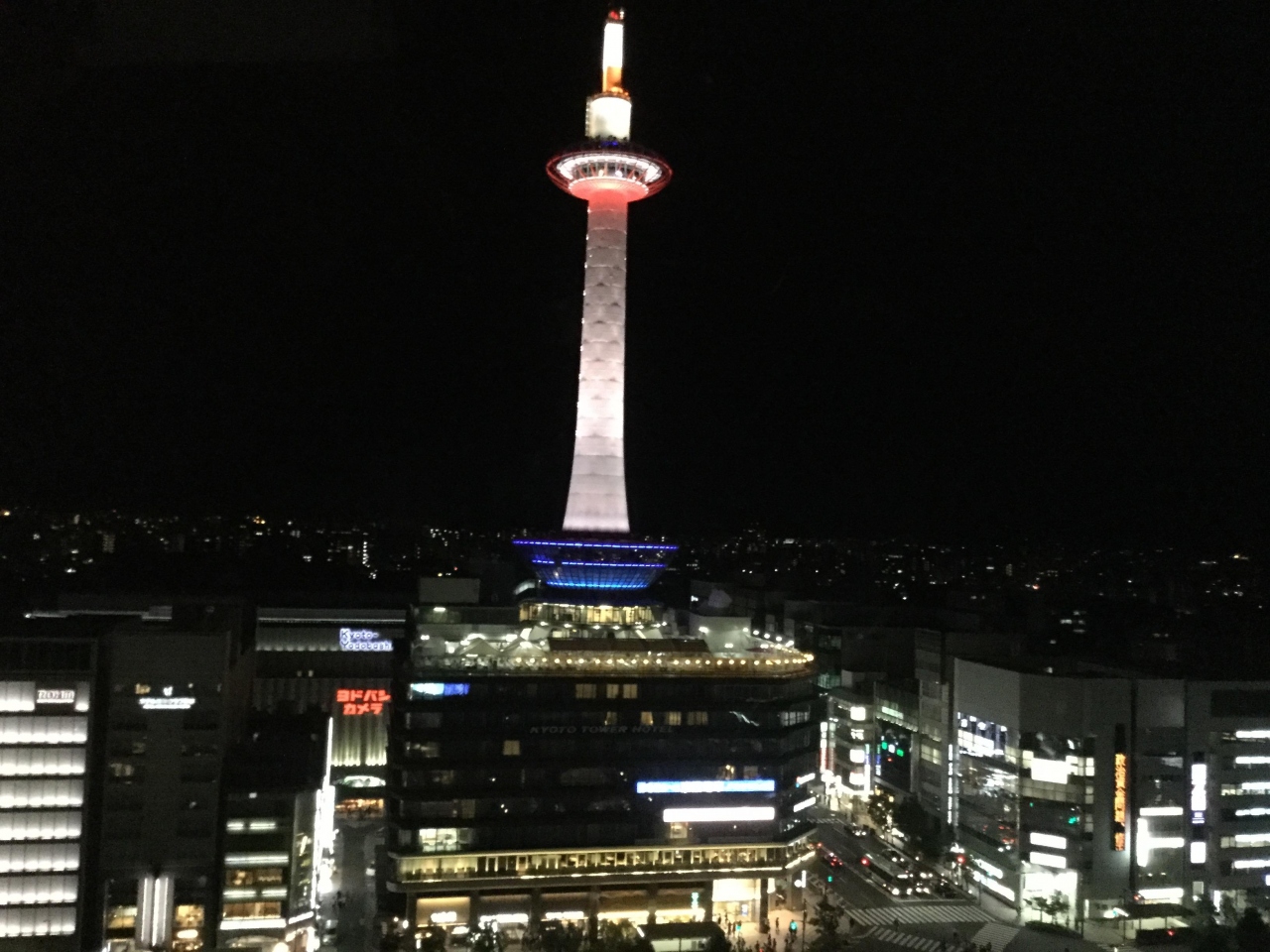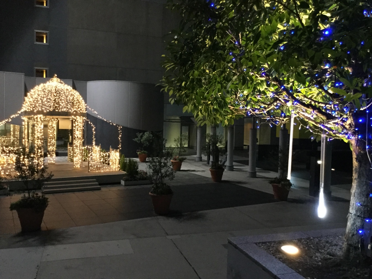 京都駅ビルの中の端から端を上で繋ぐ経路が展望所にもなっています。伊勢丹のビルから入り、反対のグランビアホテル側に出たのですが、ちょっとした冒険のようなドキドキ感が有ります。途中で、京都タワーが見れる場所があって眺めが最高でした。グランビアホテル側につくと急なエスカレーターがあって、高所恐怖症の人には少し辛いかと思います。丁度、グランビアホテルの中庭に出て、こちらのイルミネーションも可憐で心和ませてくれます。冒険旅行したような思いになれて、この経路を使った人のセンスは凄いなと思いながら、中庭の灯りを楽しみました。