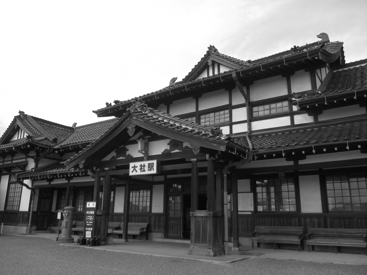 明治45年に、国鉄大社駅として開業。 この駅舎は大正13年に改築されたそうです。 平成2年に廃線になったJR大社線の終点の旧大社駅の駅舎はメインの役割が終わった後もキレイな状態で保存され、自由に見学が出来るようになっています。 もともとが駅なので、駐車場も広く便利です。 出雲大社から歩いて行くには、一本道ではありますが、結構距離がありますのでご注意を!