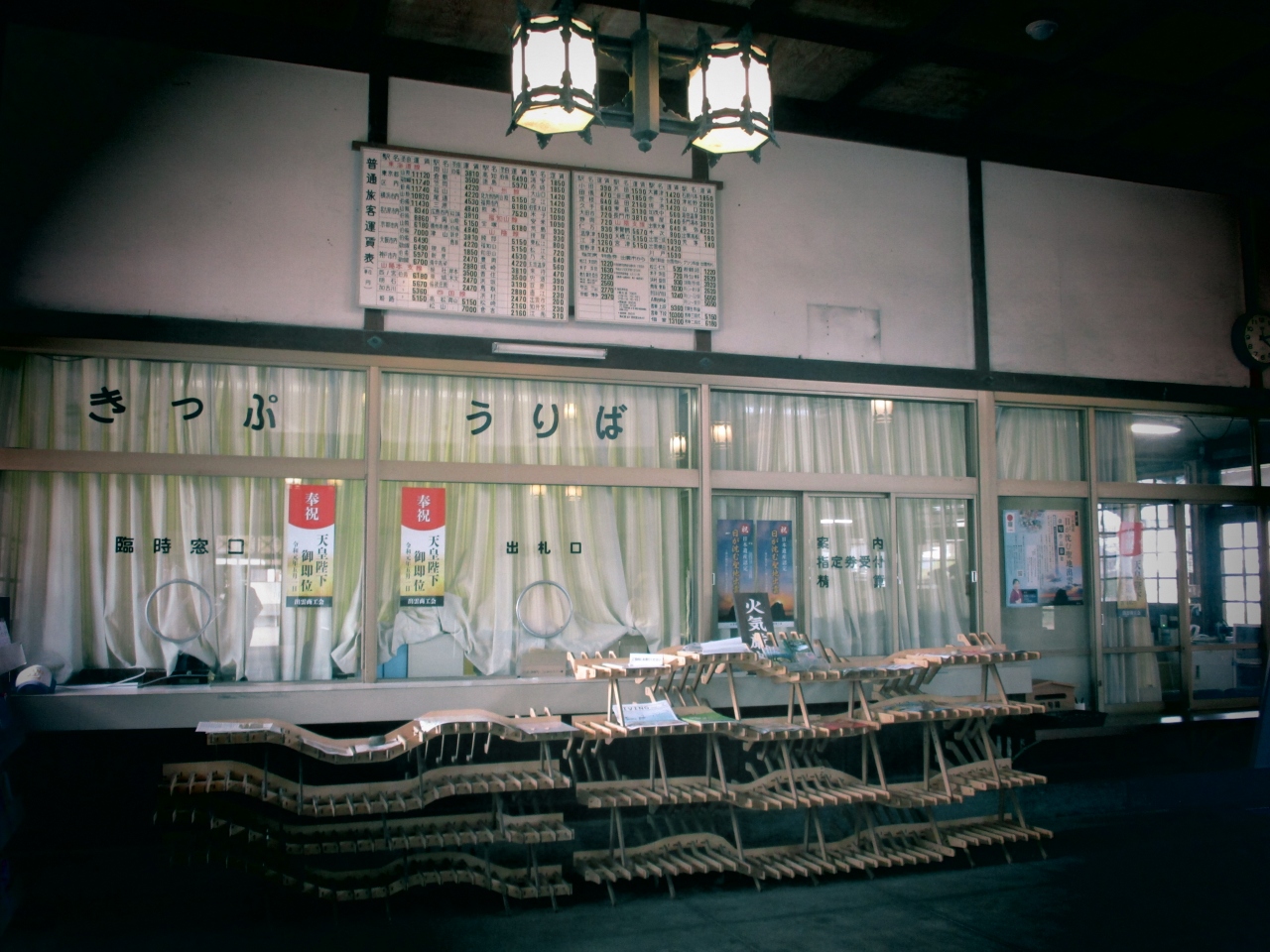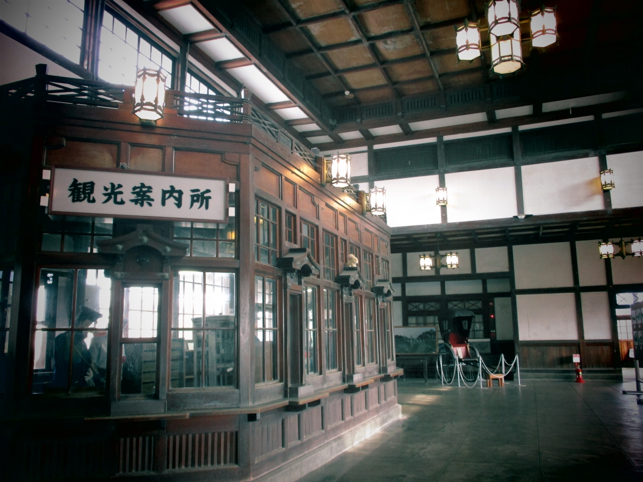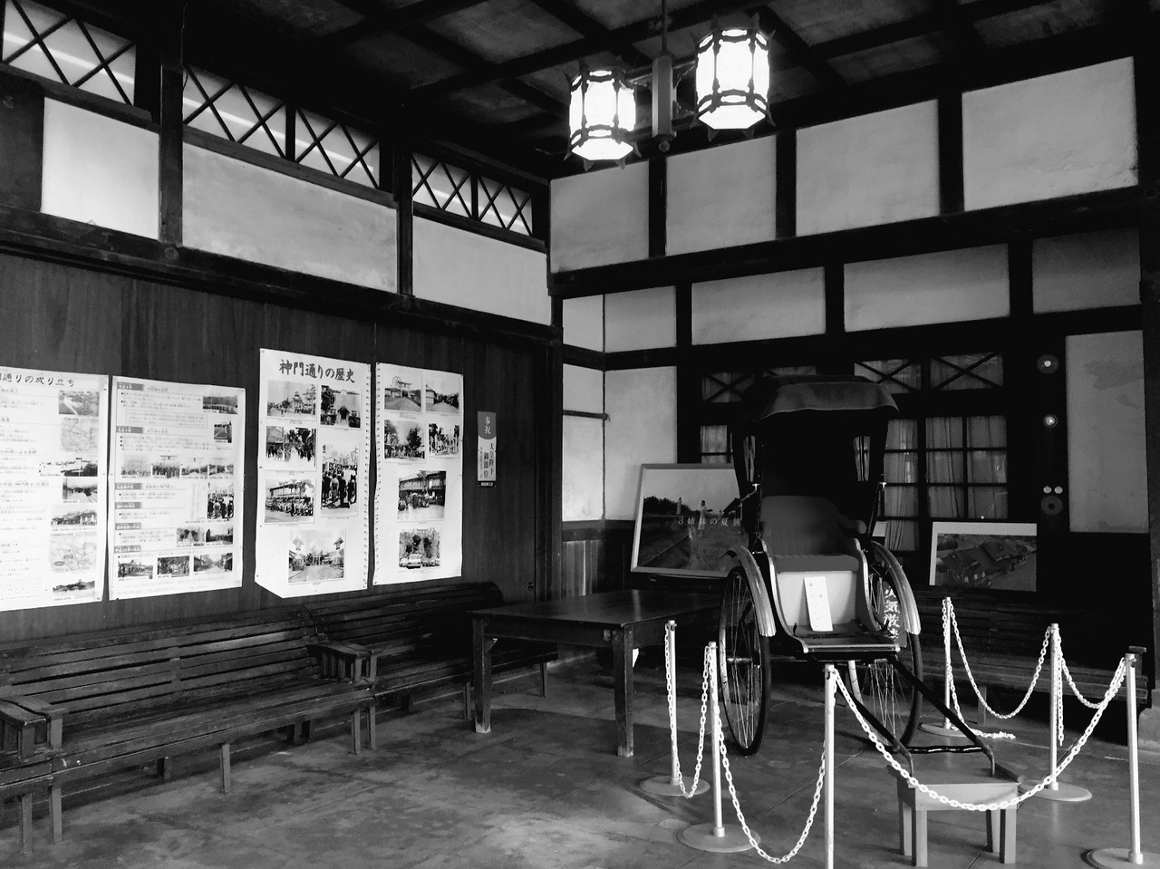 駅舎内のきっぷ売り場や料金表なども当時のままに保存されています。 昭和の雰囲気が良いですね。 内部には人力車なども展示されています。 建物全体や装飾などからは大正浪漫の建築美が感じられます。