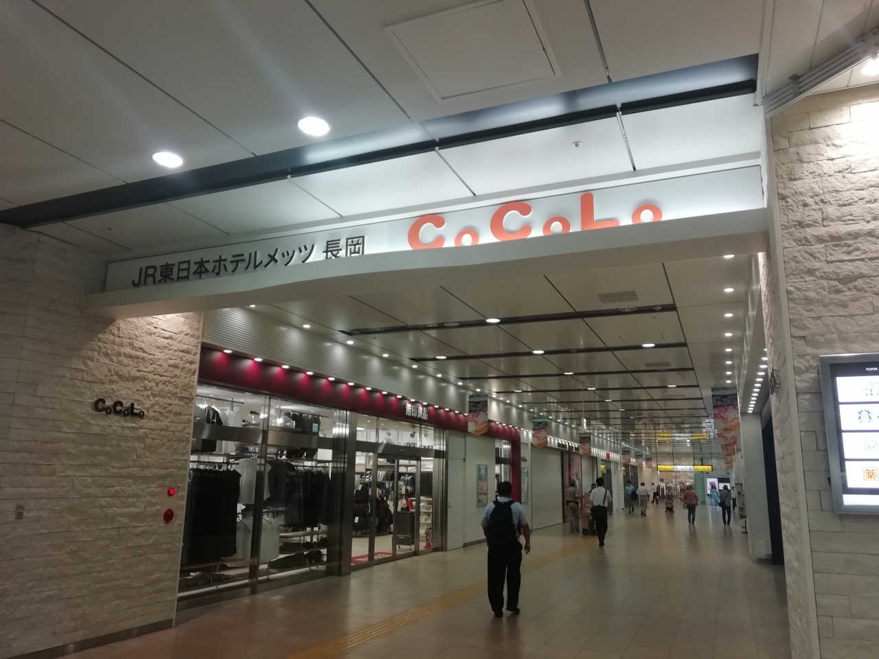 JR長岡駅に直結しているショッピングモールのCoCoLoです。様々なテナントショップが入っていますがメインは地元名産品の土産物店や飲食店で、地元ならでわの飲食店もあります。昼時、夕方は結構混雑していますので時間に余裕を持っての利用を、是非。