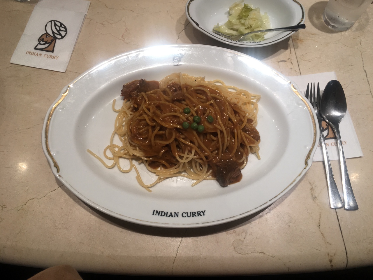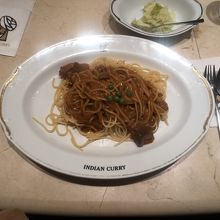炒めたパスタにカレーのルウがかかっていて絶品の人気メニューです。